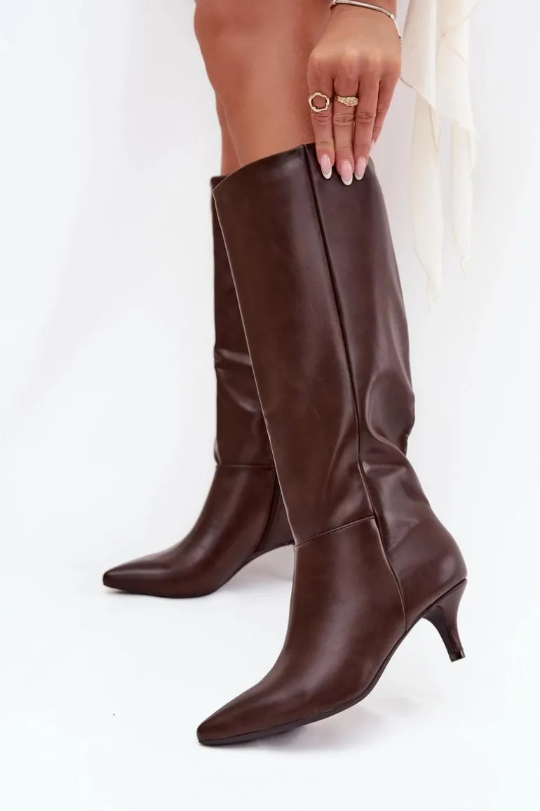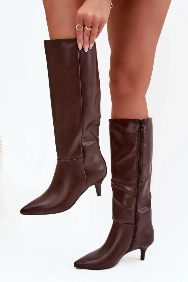 Kozaki damskie wykonane z eko skóry to elegancka propozycja na chłodniejsze dni. Osadzone na niskiej szpilce prezentują się subtelnie i kobieco, a szpiczaste noski dodają całości szyku oraz optycznie wysmuklają sylwetkę. Wnętrze ocieplone kocem obuwniczym zapewnia komfort i ciepło, dzięki czemu buty świetnie sprawdzą się w sezonie jesienno-zimowym. To model idealny zarówno do codziennych, jak i eleganckich stylizacji. Przy wyborze rozmiaru prosimy kierować tabelą rozmiarów.