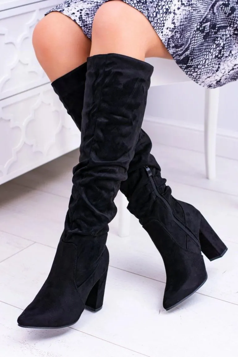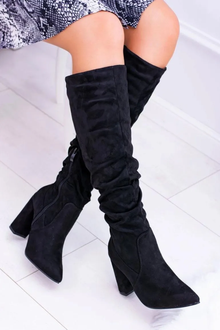 Kozaki Damskie Na Obcasie W Szpic Zamszowe Czarne Nightcall