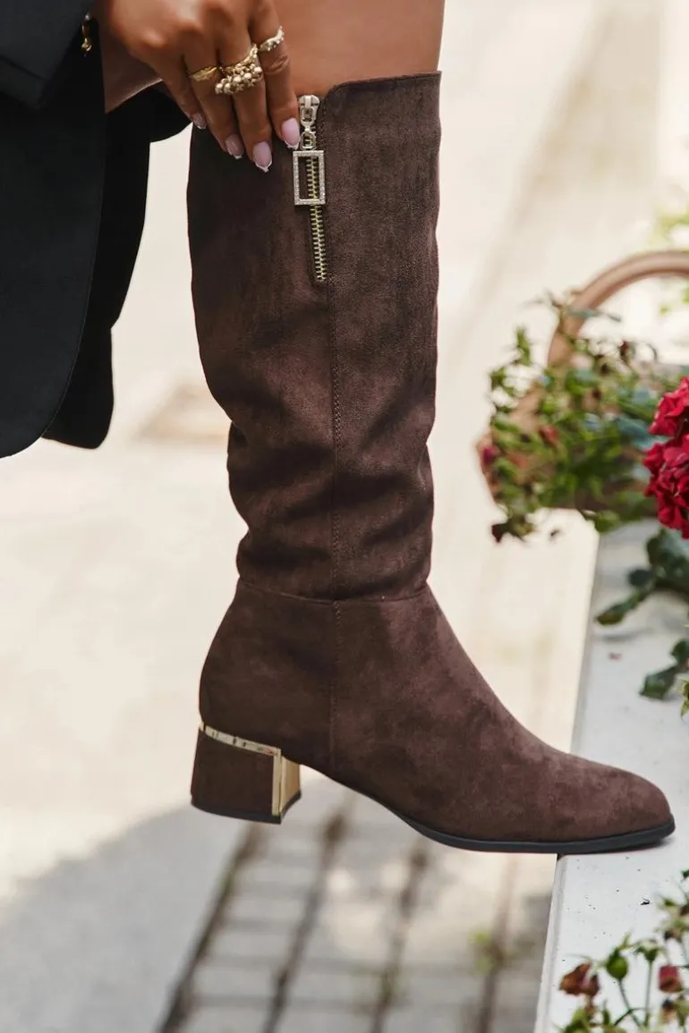 Kozaki damskie wykonane z eko zamszu to doskonała propozycja na chłodniejsze dni. Osadzone na niskim obcasie gwarantują wygodę podczas noszenia, a praktyczny zamek ułatwia zakładanie. Uwagę przyciągają stylowe detale – ozdobny suwak umieszczony na górze cholewki, obcas z lustrzanym elementem oraz przeszycia. To model, który świetnie sprawdzi się zarówno w codziennych, jak i bardziej eleganckich stylizacjach.