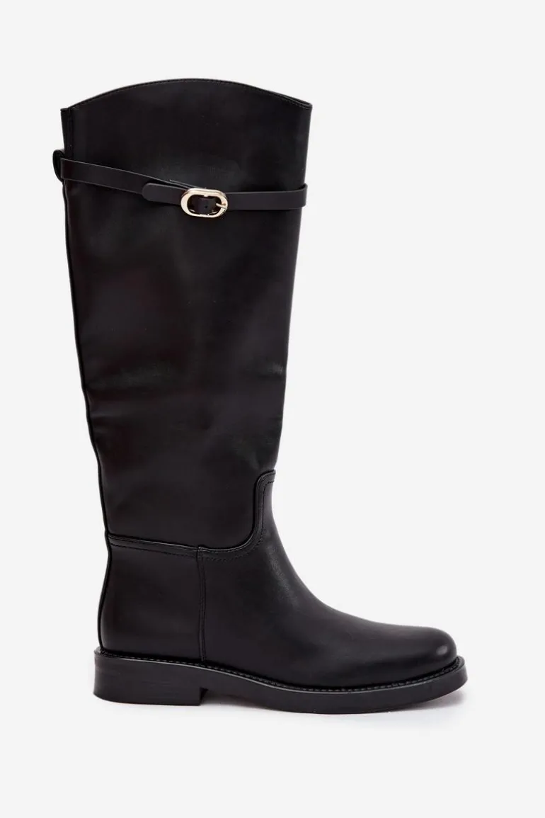 Kozaki damskie z eko skóry to połączenie prostoty i subtelnego stylu. Osadzone na płaskim obcasie, zapewniają wygodę przy codziennym noszeniu, a zamek ułatwia szybkie zakładanie. Wnętrze ocieplone na wysokości stopy gwarantuje komfort w chłodniejsze dni. Dodatkowo cienki paseczek ze złotą klamrą, który można odpiąć, wprowadza elegancki akcent i pozwala na drobną zmianę stylu w zależności od okazji. Przy wyborze rozmiaru prosimy kierować tabelą rozmiarów.