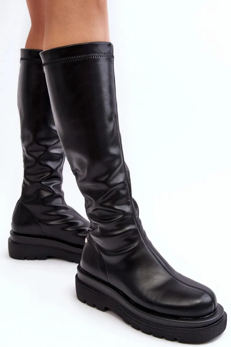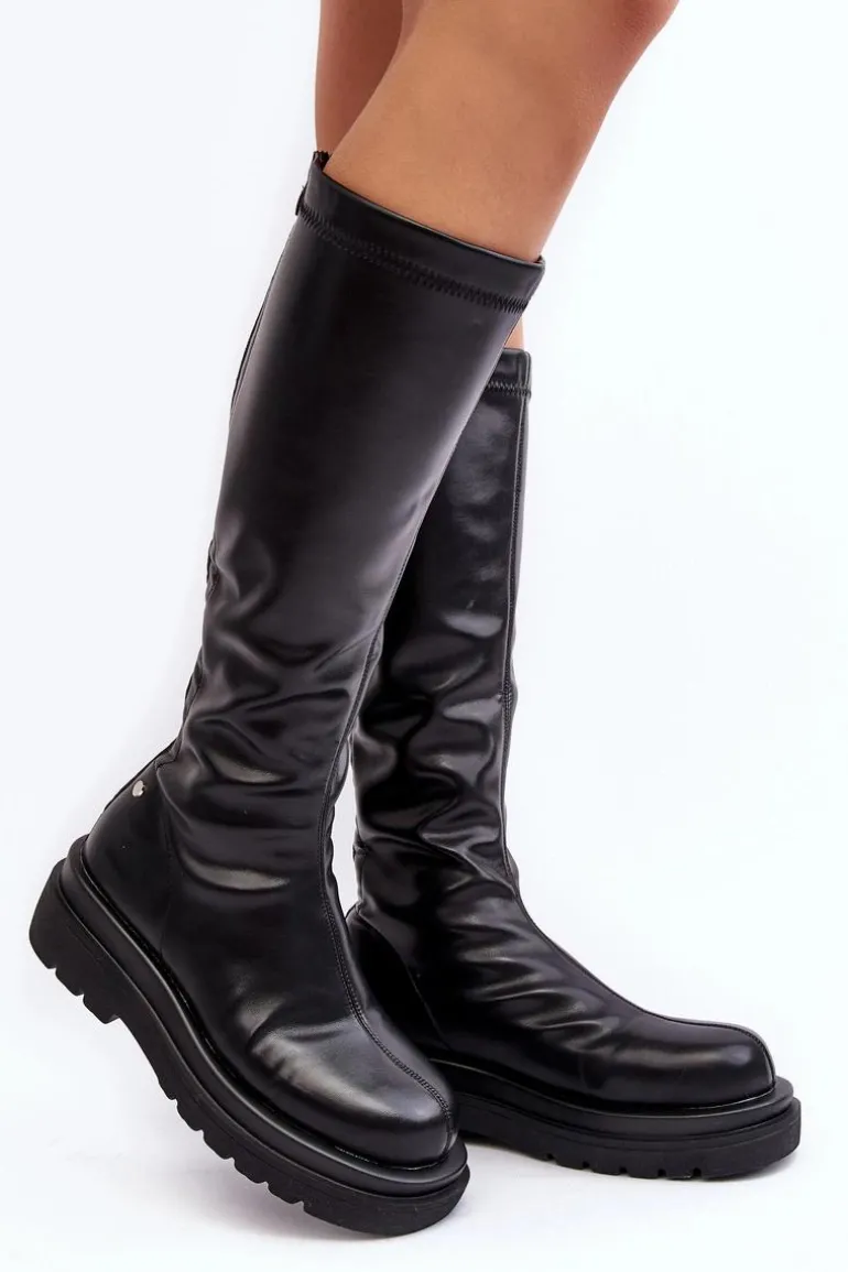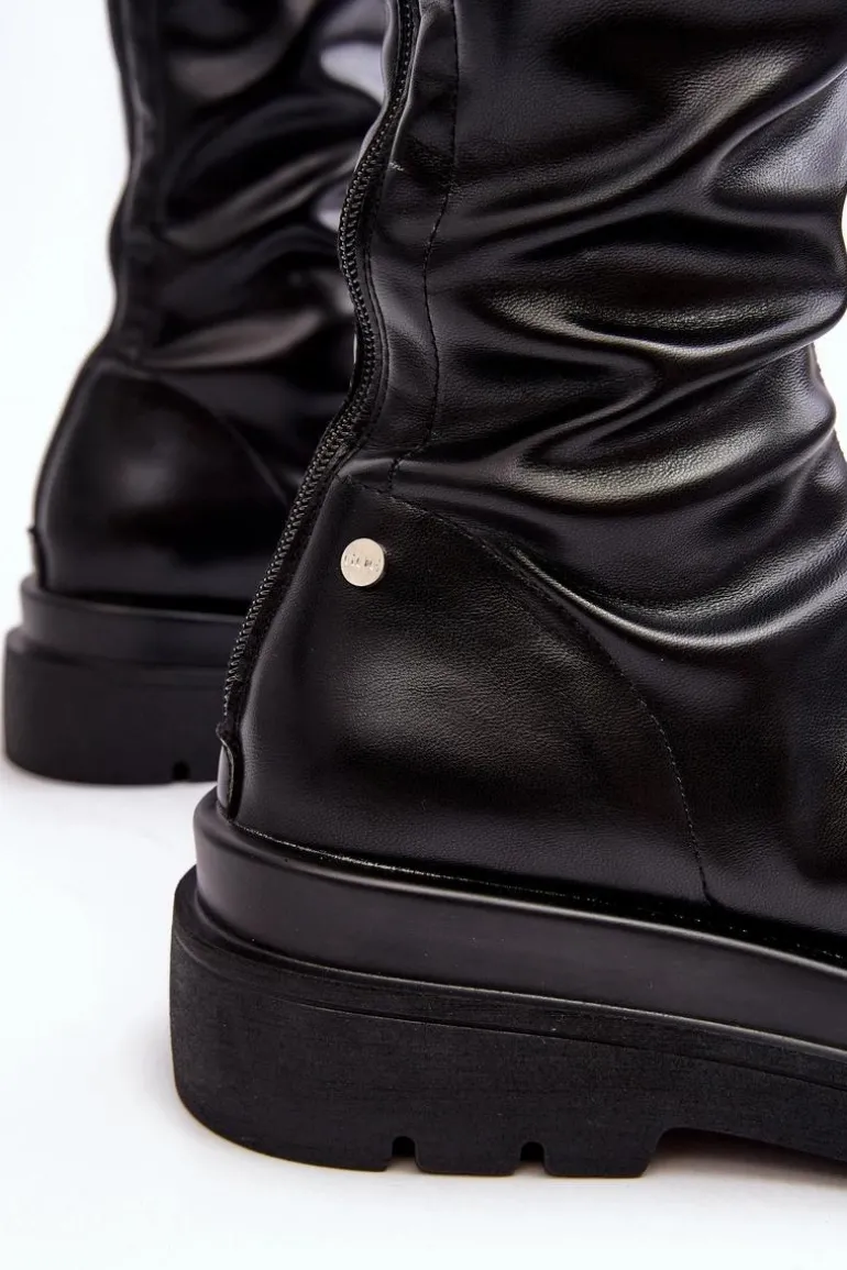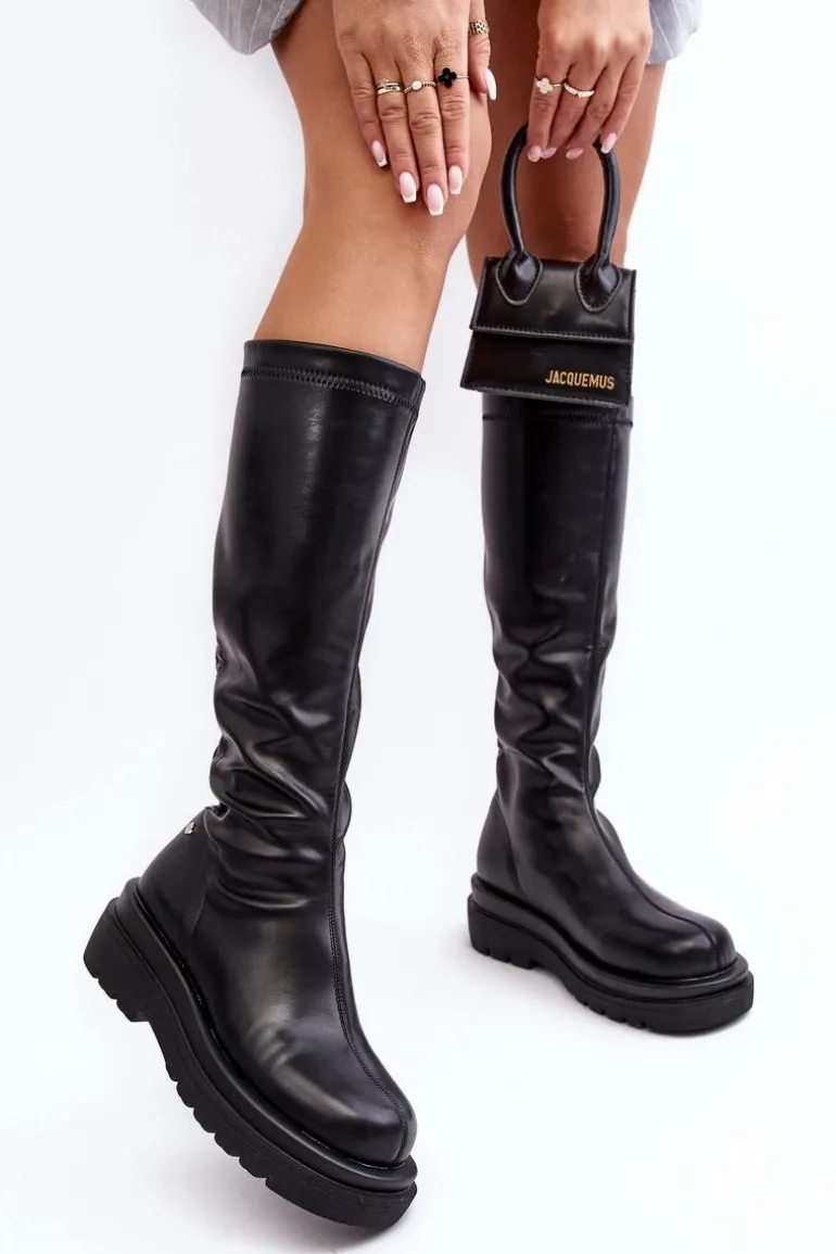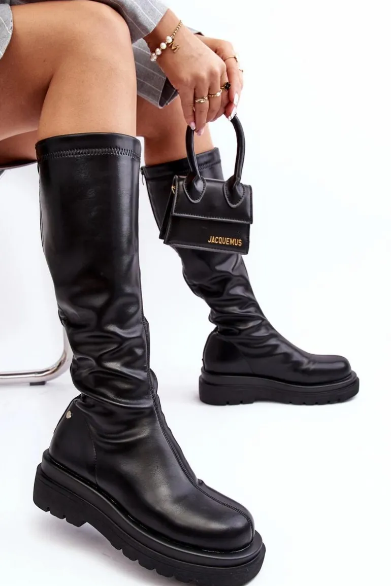 Kozaki damskie od marki GOE zostały wykonane ze skóry ekologicznej. Model z suwakiem na całej długości cholewki tyłu. Osadzone na platformie i płaskim obcasie. Kozaki zostały ocieplone miłym w dotyku kocem obuwniczym. Cholewka do kolana, ozdobiona przeszyciami. Koniecznie powinnaś je mieć! Przy wyborze rozmiaru prosimy sugerować się tabelą rozmiarów.