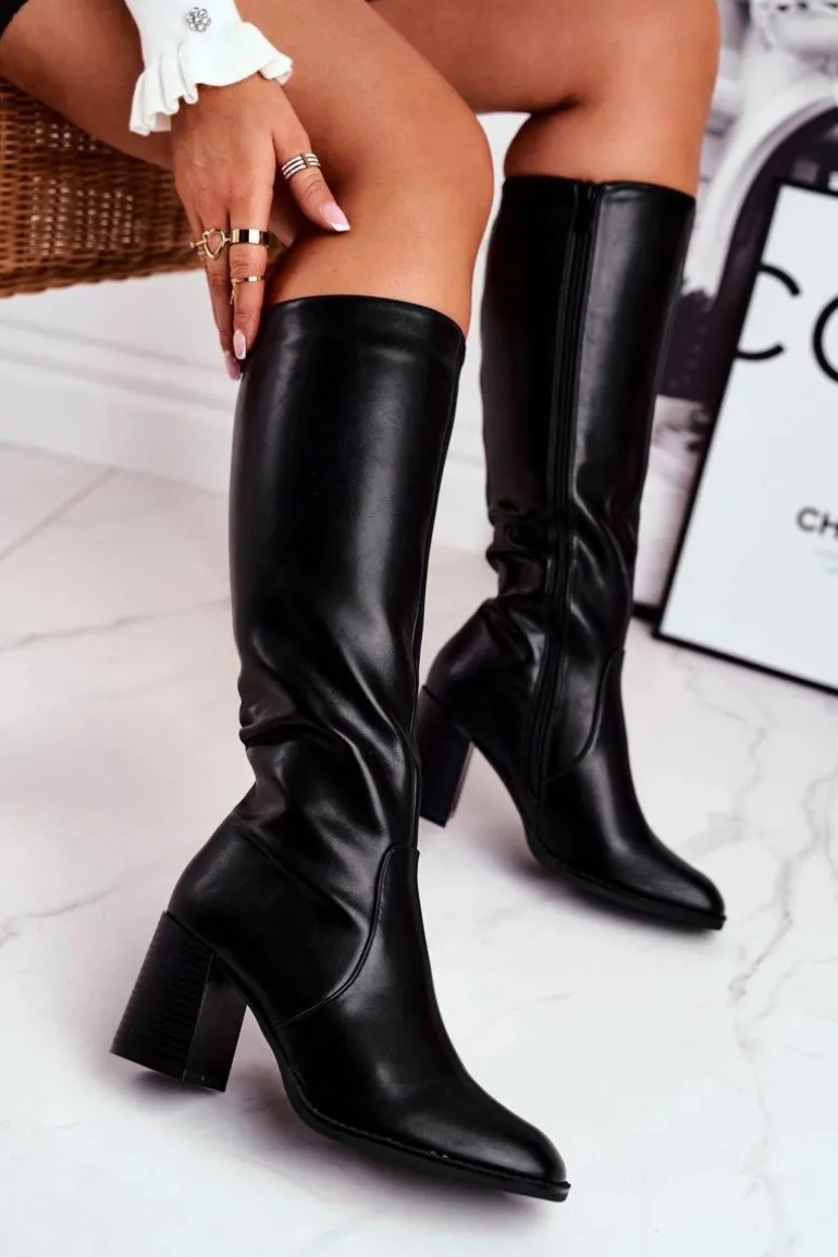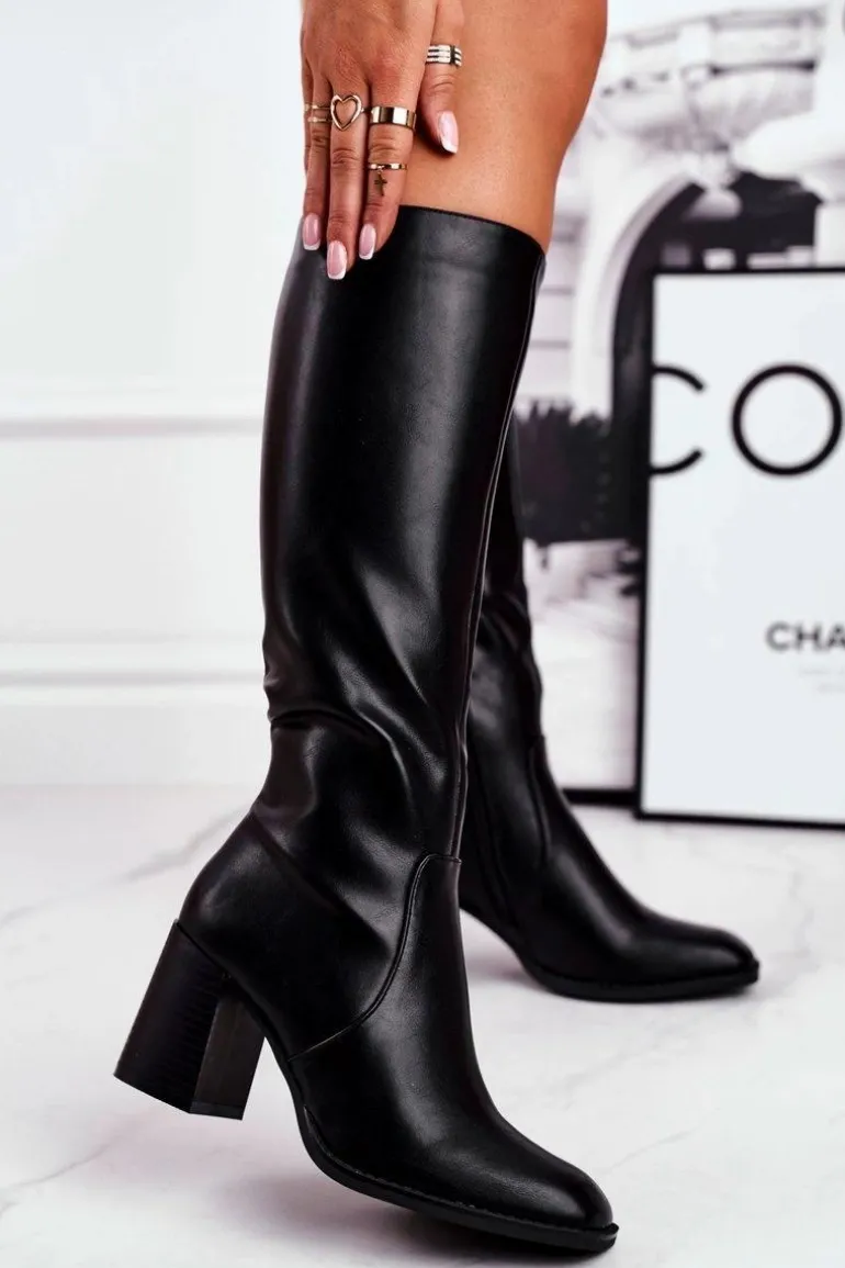 Kozaki Damskie Na Słupku Ciepłe Czarne Veronique