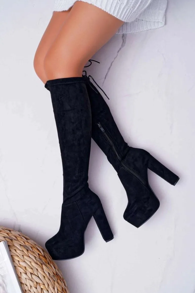 Kozaki Damskie Na Słupku Czarne Kontiga
