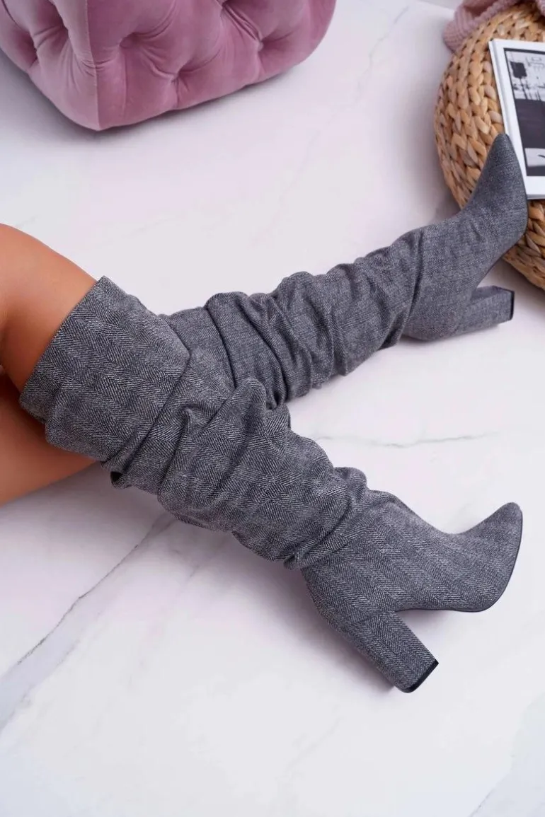 Kozaki Damskie Na Słupku Do Kolan Szare Termen