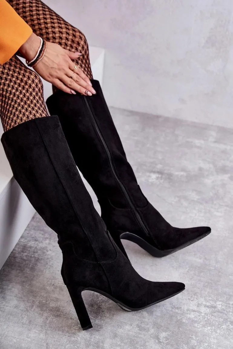 Kozaki Damskie Na Słupku Do Kolana Czarne Truly Love