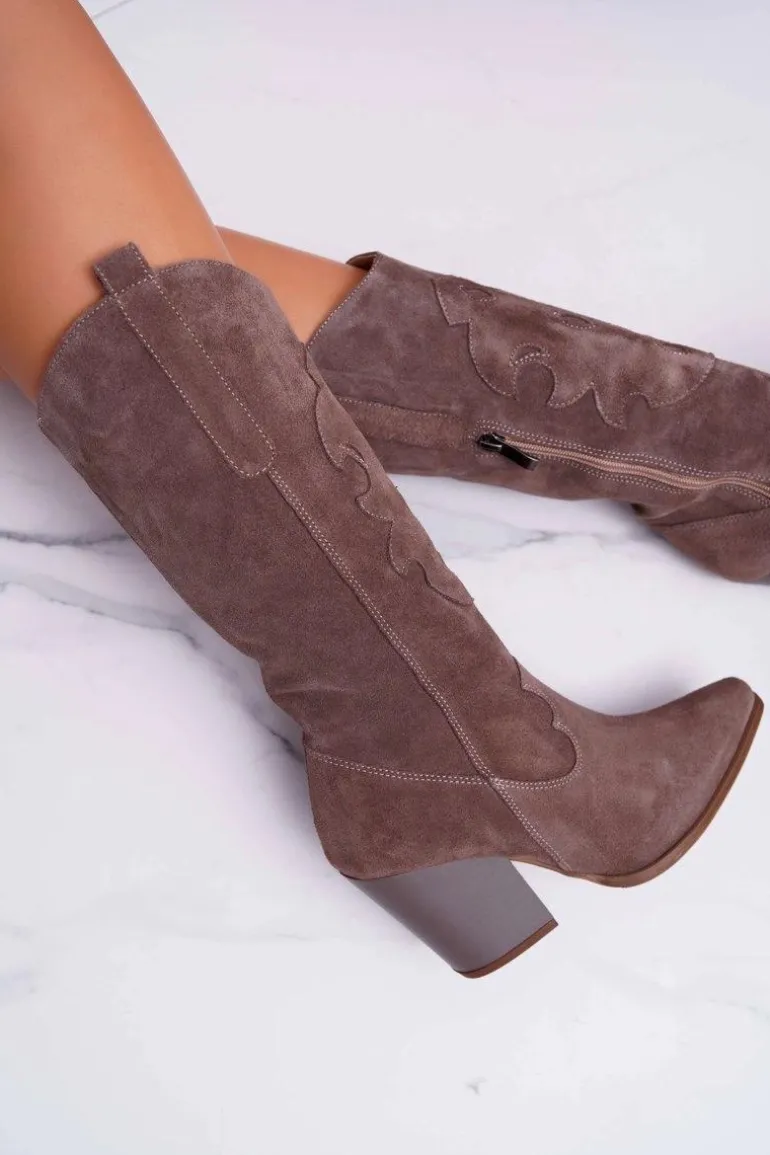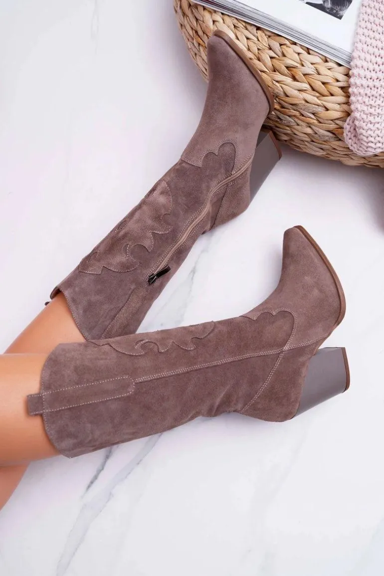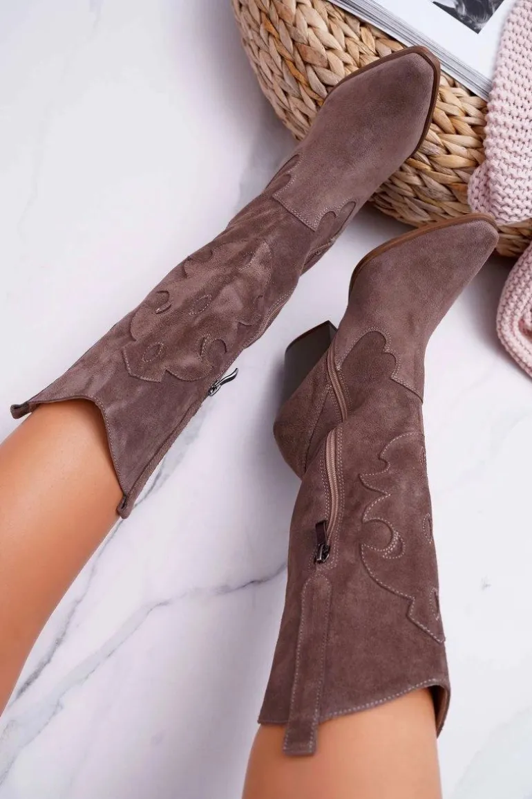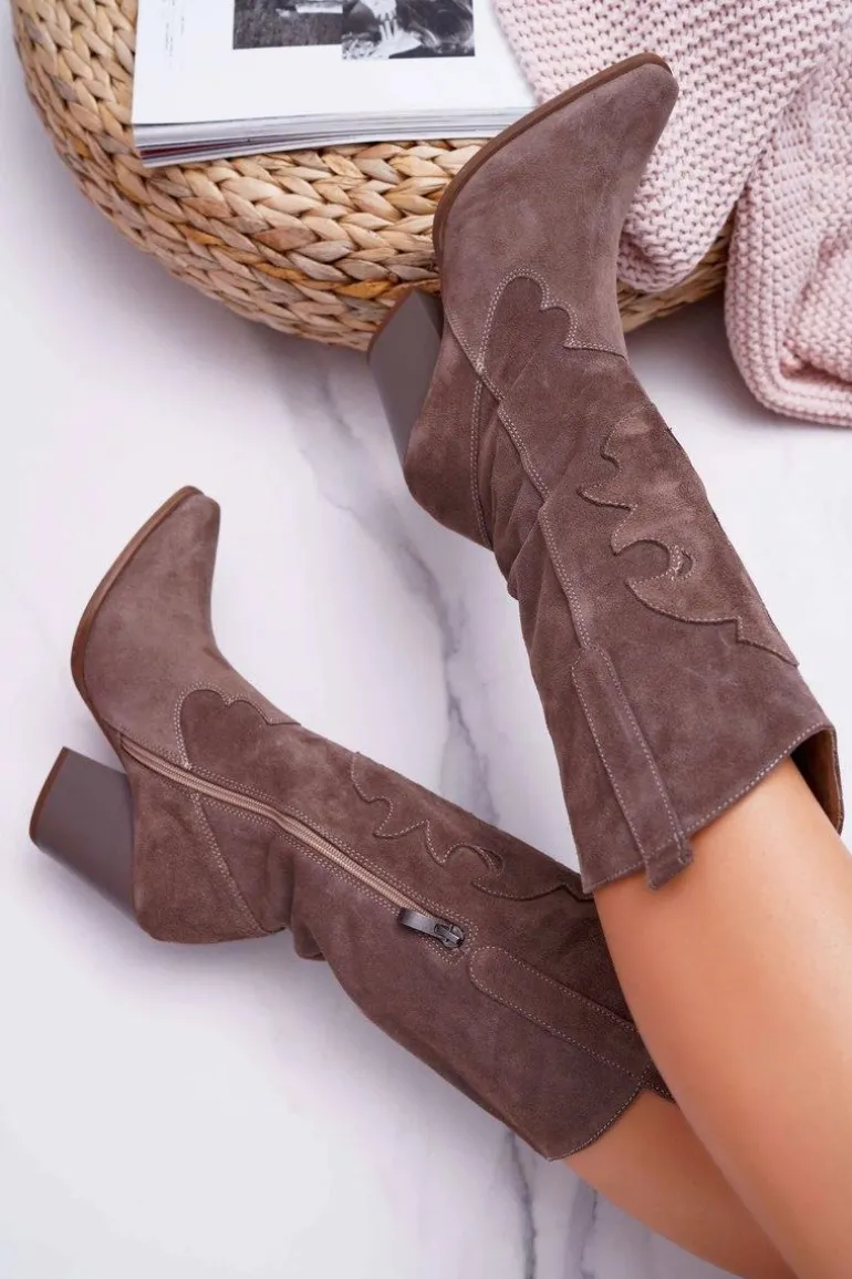 Kozaki Damskie Na Słupku Kowbojki Cappuccino Brunt