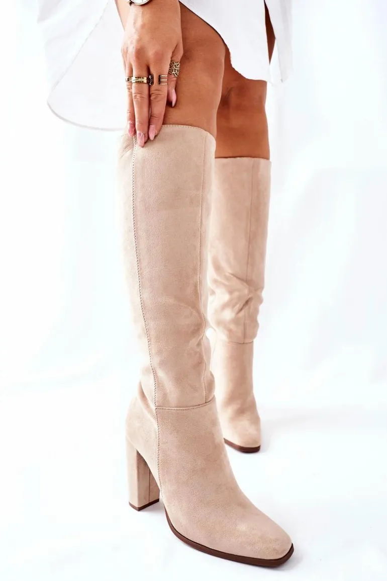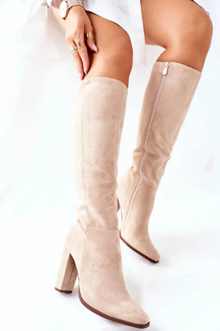 Modne, stylowe damskie kozaki, które podbiją serca każdej fanki mody. Kozaki zostały wykonane z ekologicznego zamszu, który łączy się idealnie z wieloma stylizacjami. Wnętrze pokryte, ciepłym i miłym w dotyku kocem obuwniczym. Suwak po wewnętrznej stronie ułatwi zakładanie. Przy wyborze rozmiaru prosimy kierować tabelą rozmiarów.