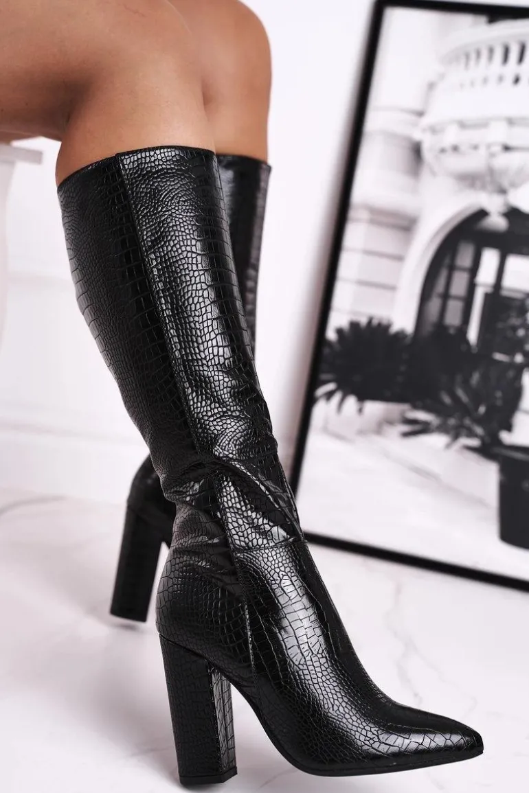 Kozaki Damskie Na Słupku Ocieplane Czarne Belvim