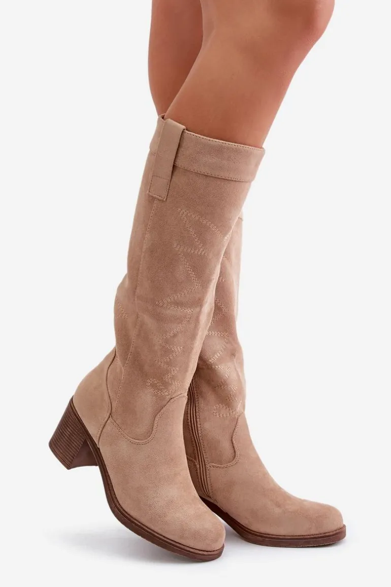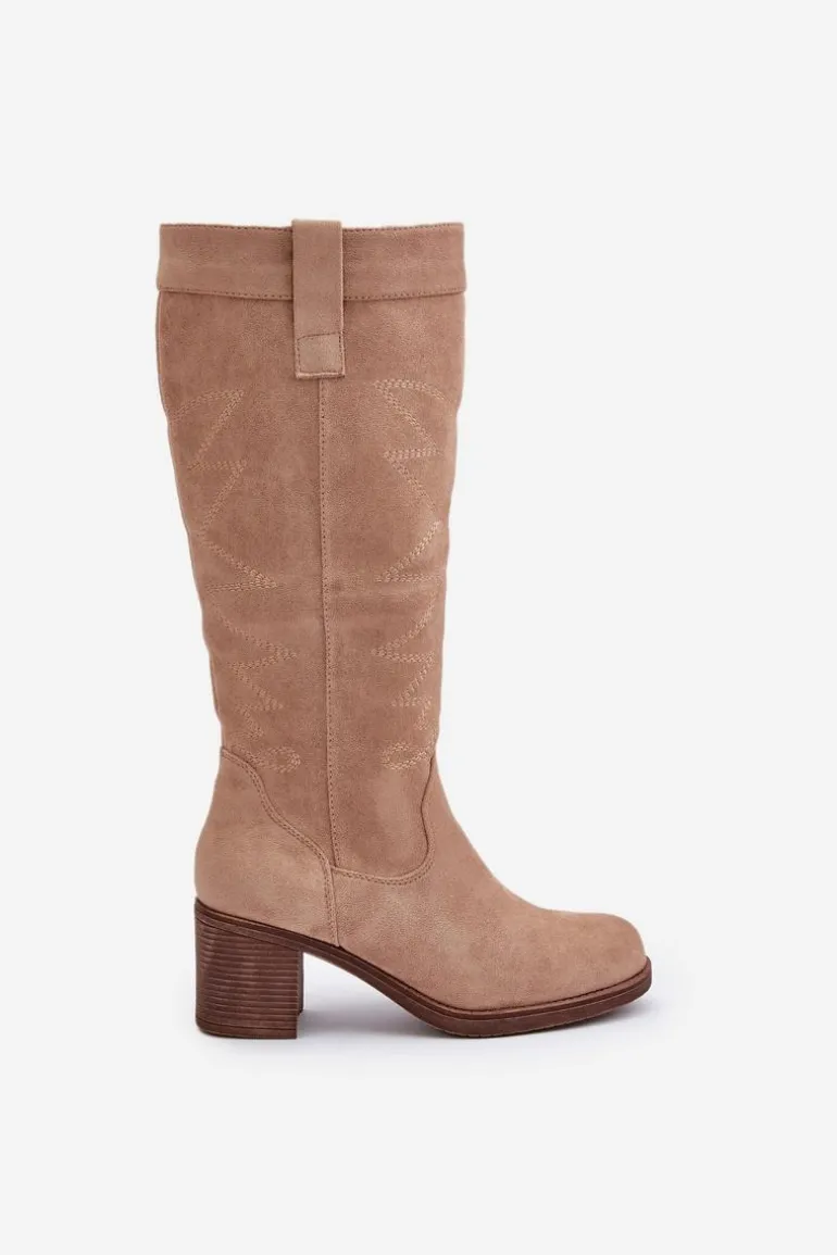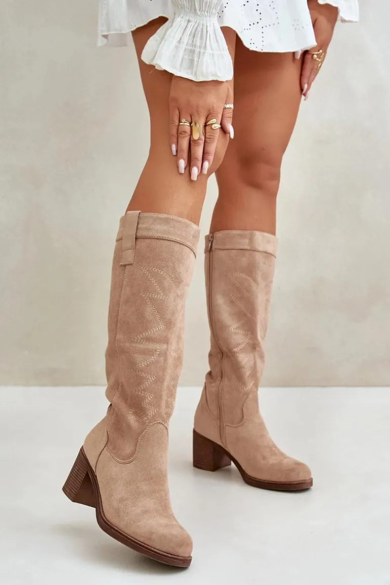 Kozaki Damskie Na Słupku Przed Kolano Beżowe Erisorae