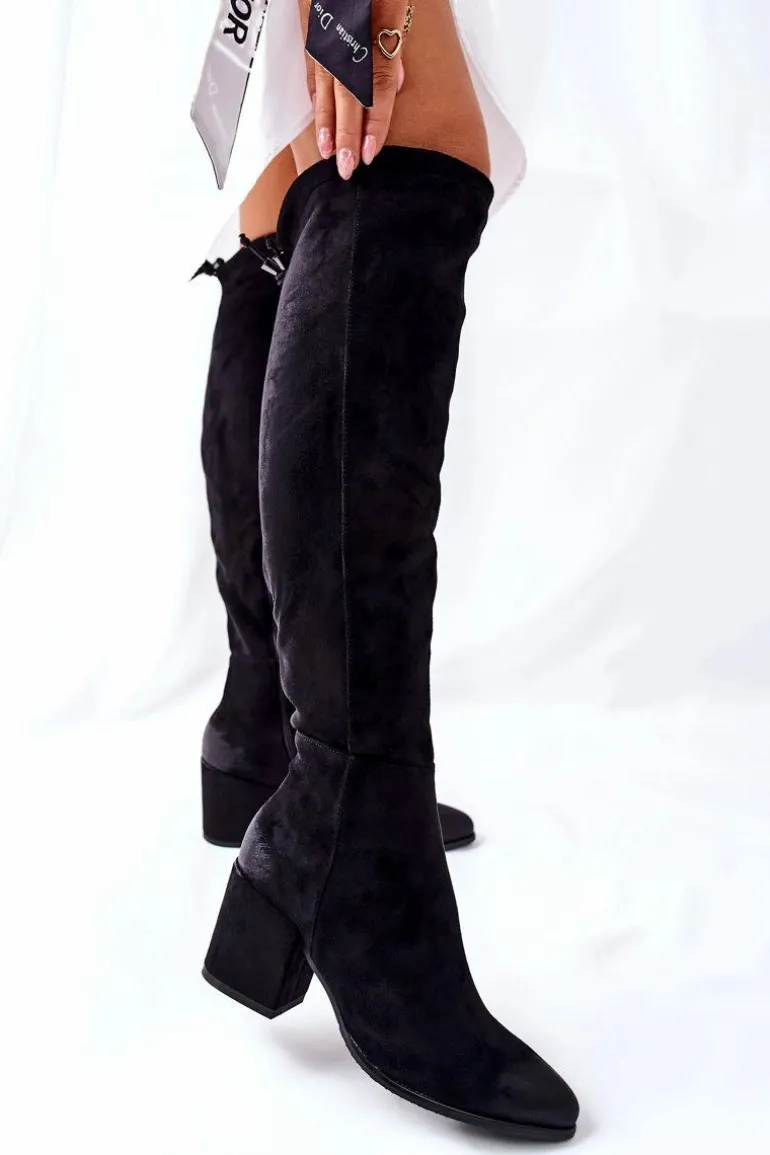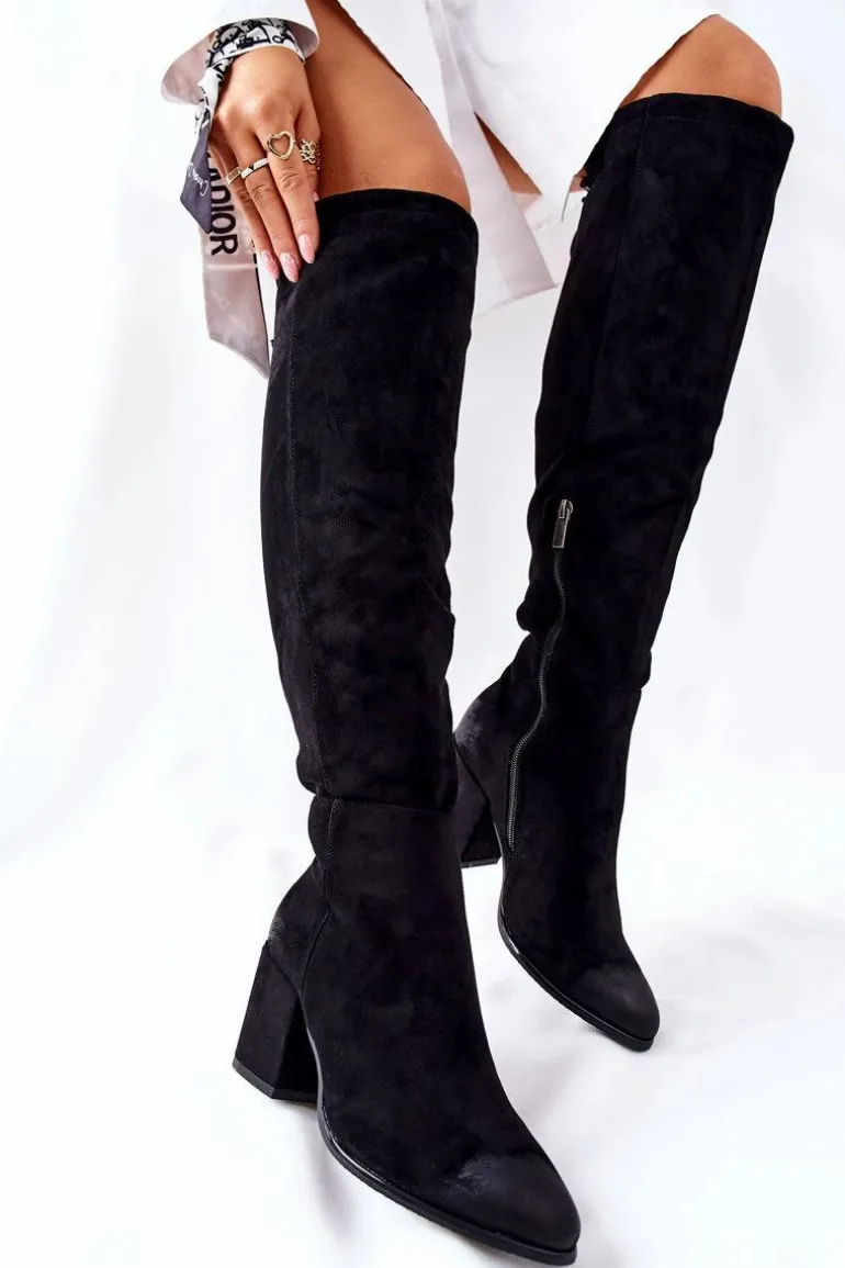 Kozaki Damskie Na Słupku Zamszowe Czarne Corrig