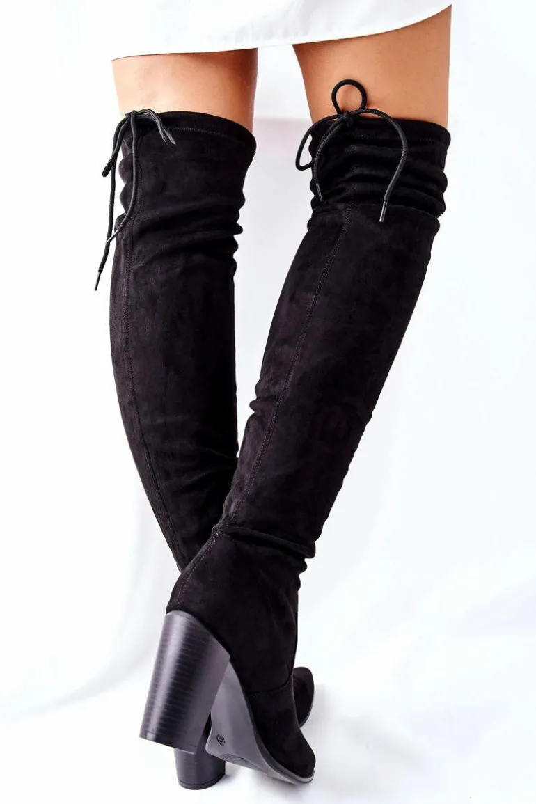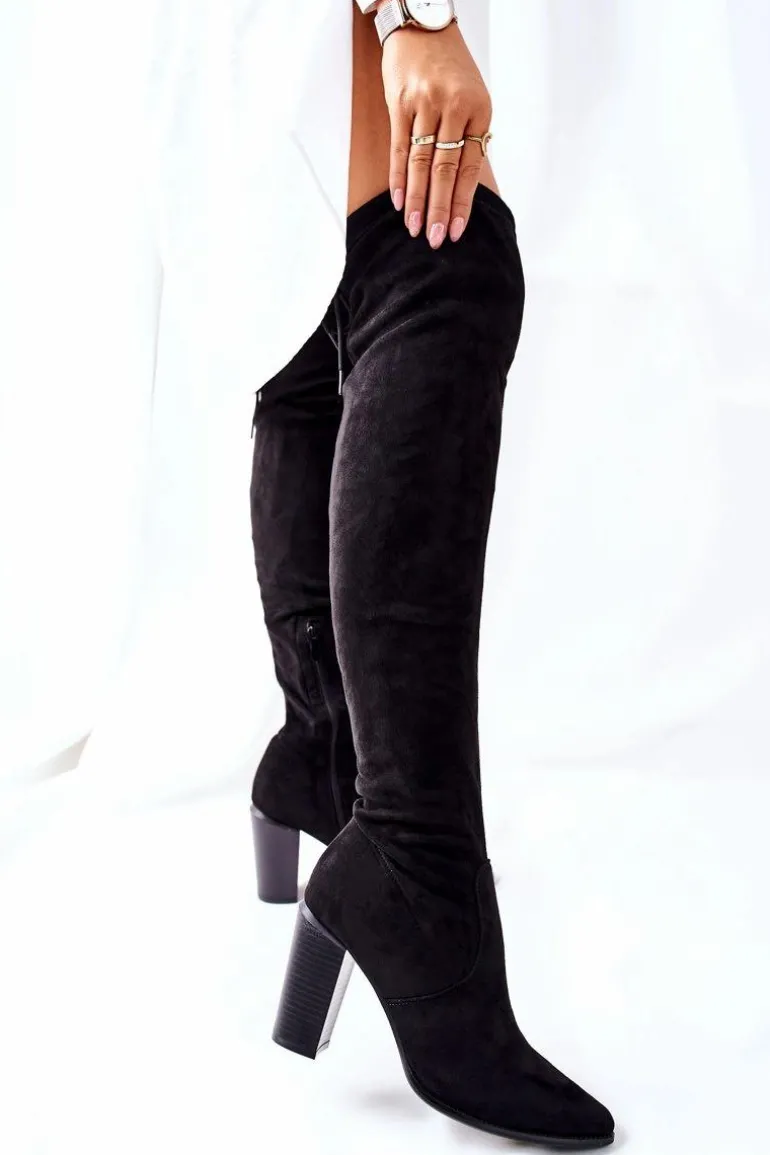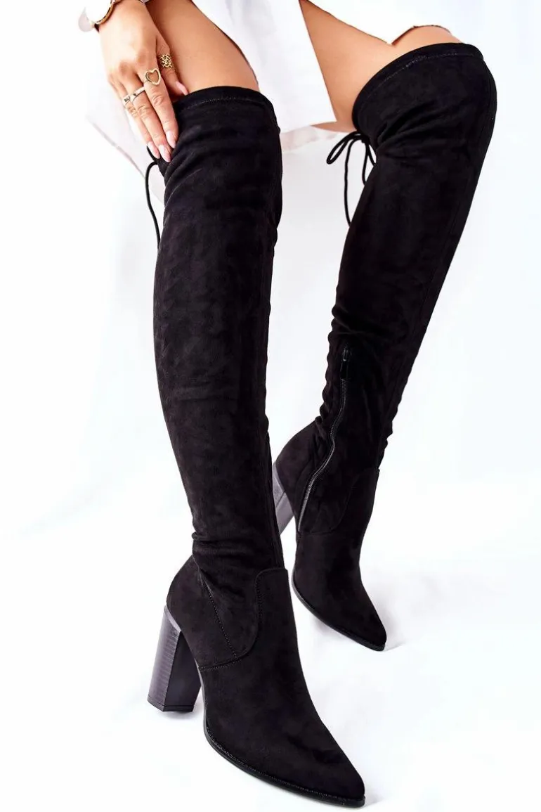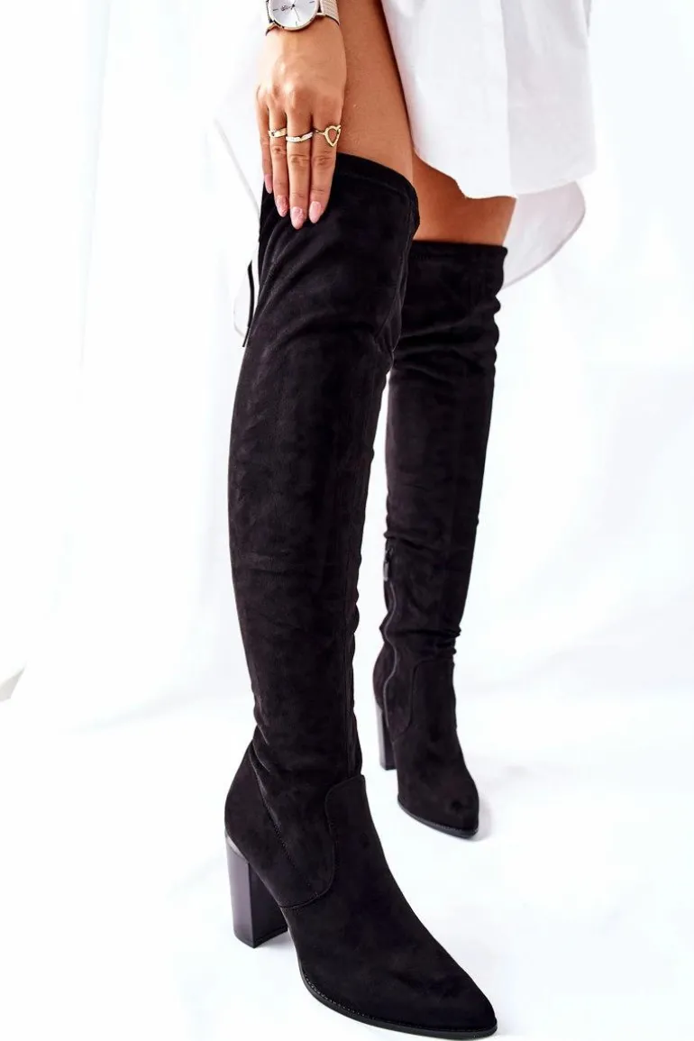 Kozaki Damskie Na Słupku Zamszowe Czarne Monleek