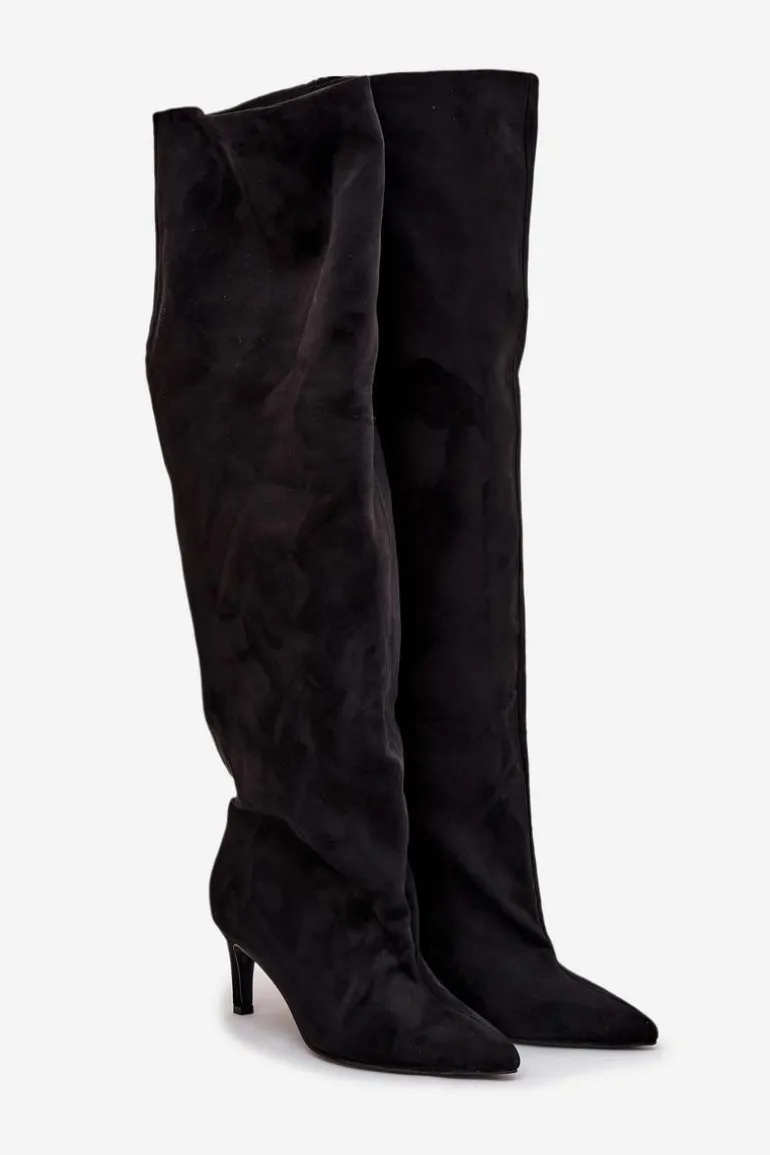 Kozaki damskie na szpilce wsuwane czarne Mavilla
