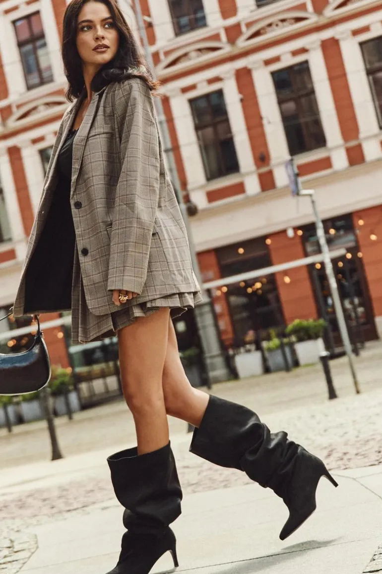 Kozaki Mavilla to propozycja dla kobiet, które cenią sobie elegancję i klasykę w nowoczesnym wydaniu. Wykonane z miękkiego eko zamszu w ciepłym czarnym odcieniu, prezentują się niezwykle stylowo i kobieco. Wysoka cholewka sięgająca za kolano pięknie wydłuża nogi, a smukła linia buta subtelnie podkreśla sylwetkę. To model, który doskonale łączy modny wygląd z wygodą użytkowania.