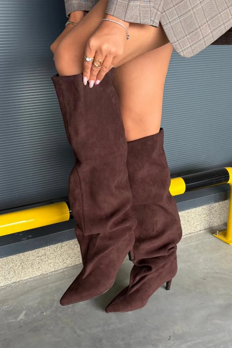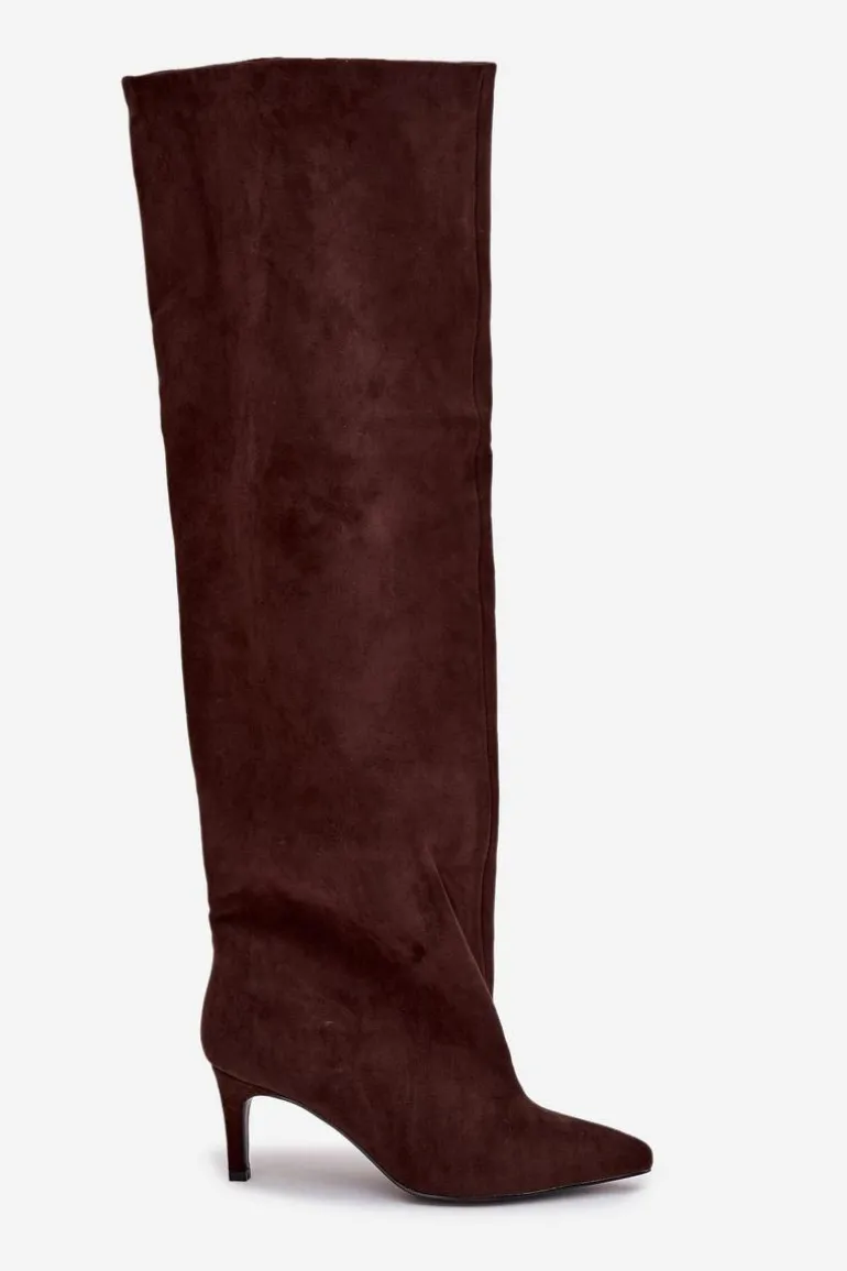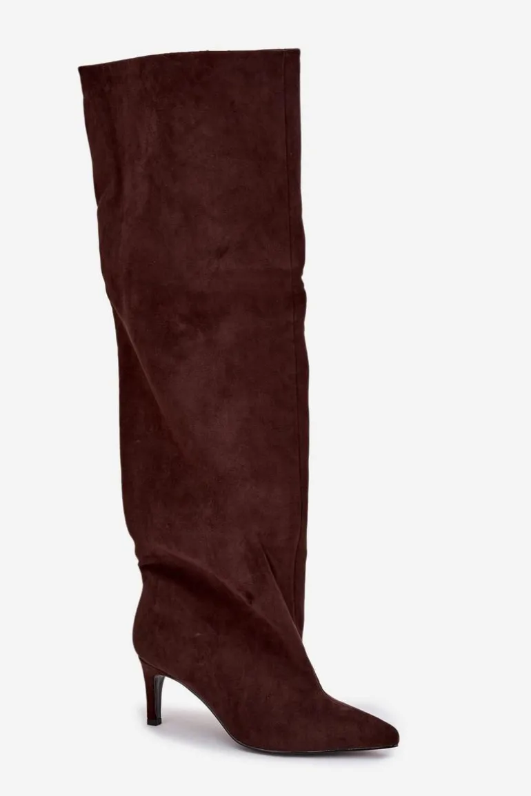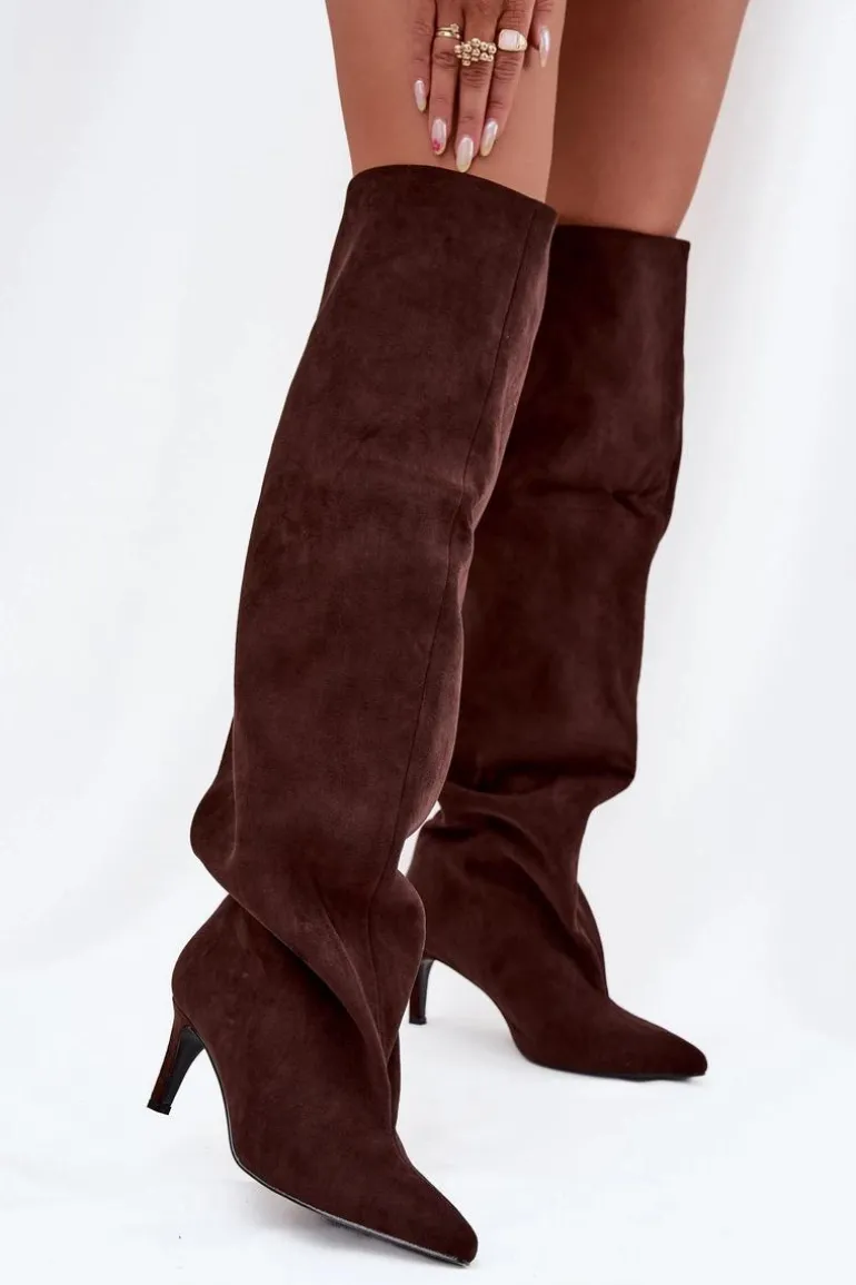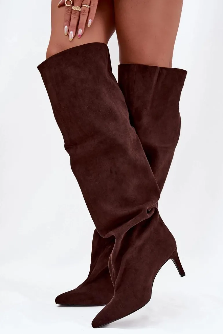 Kozaki damskie na szpilce wsuwane czekoladowe Mavilla
