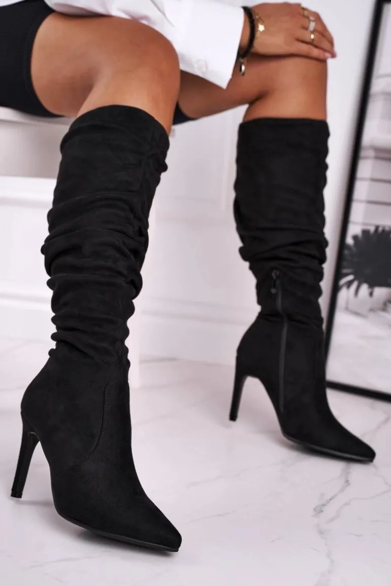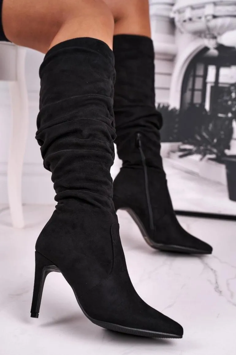 Kozaki Damskie Na Szpilce Zamszowe Czarne Dynamic