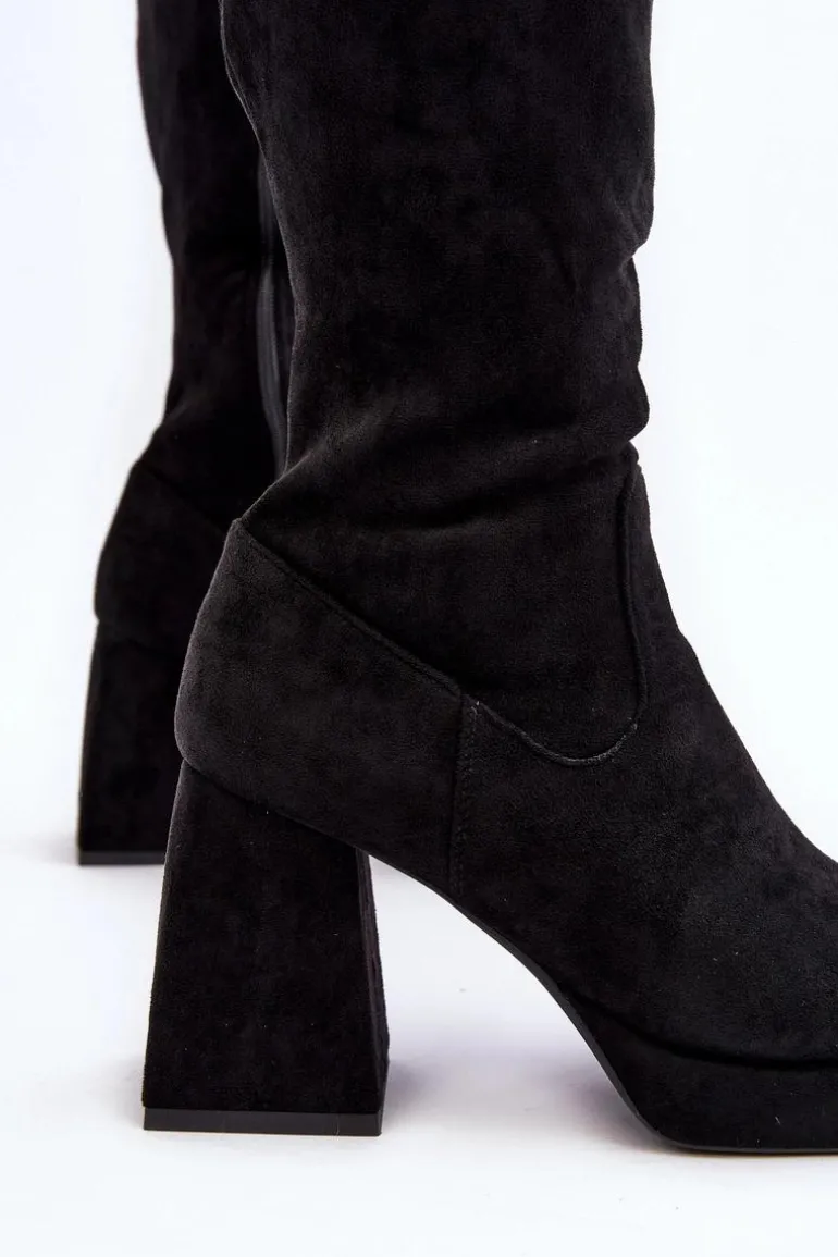 Kozaki Damskie Ocieplane Na Masywnym Obcasie Czarne Layala