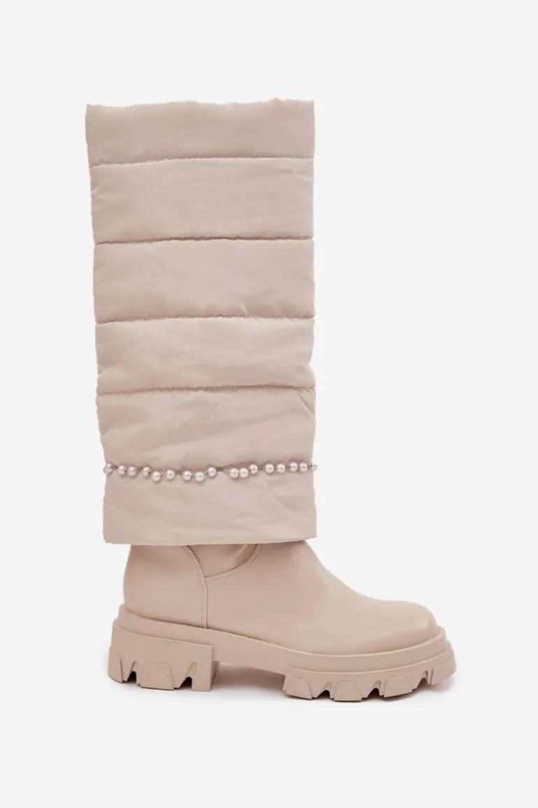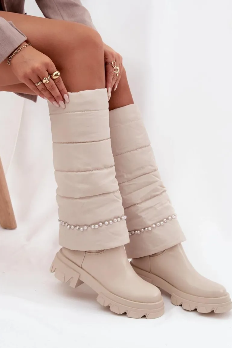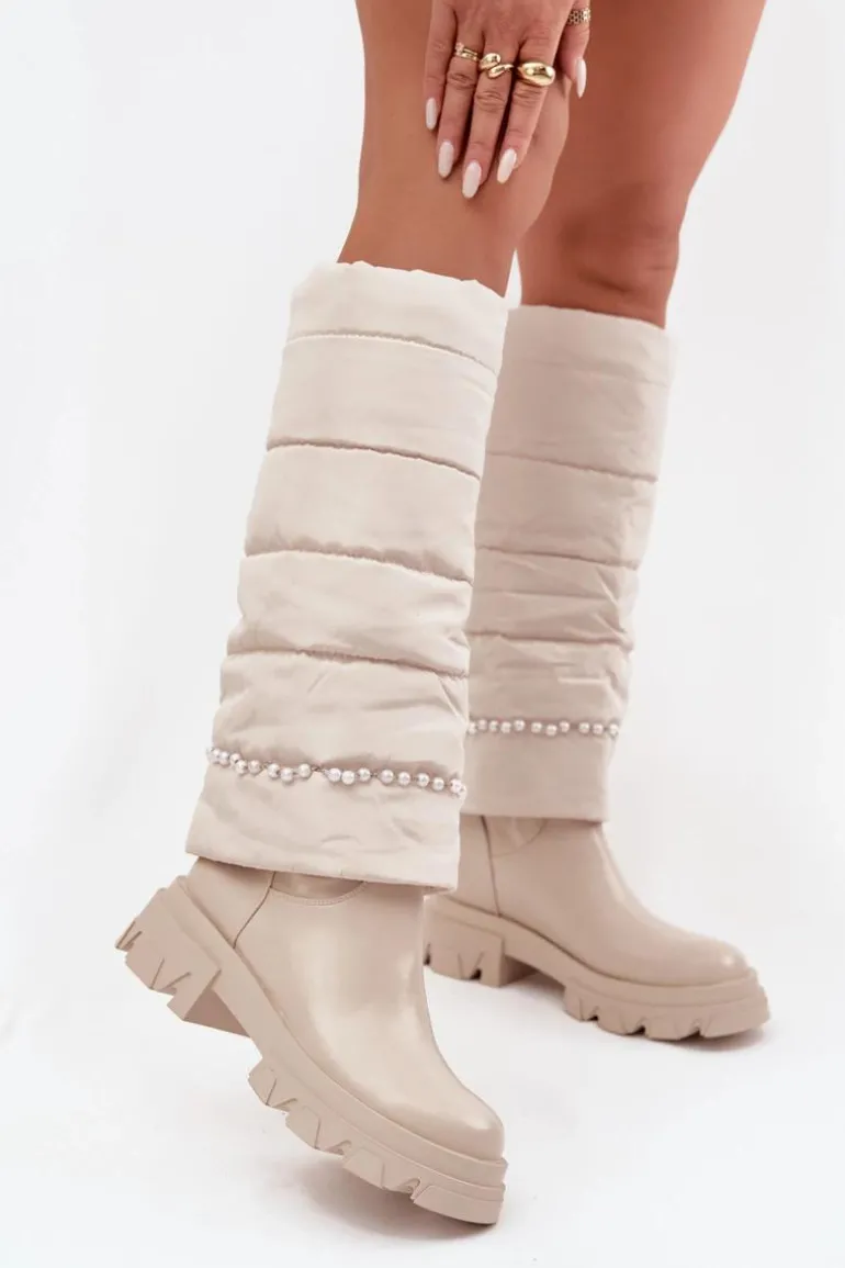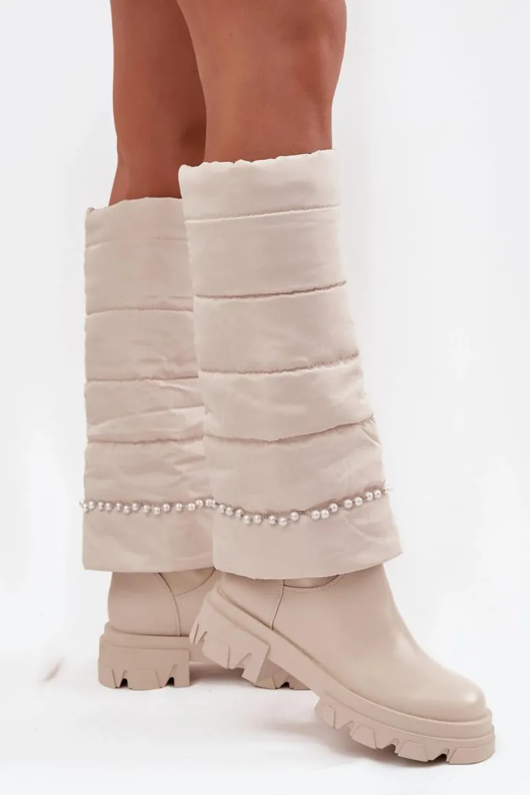 Kozaki damskie wykonane z połączenia eko skóry i materiału tekstylnego to stylowa propozycja na chłodniejsze dni. Wsuwany fason zapewnia wygodę zakładania. Wnętrze ocieplone kocem obuwniczym gwarantuje ciepło i komfort podczas noszenia. Zaokrąglone noski podkreślają klasyczny charakter obuwia, natomiast subtelne koraliki stanowią elegancki detal, który dodaje całości wyjątkowego uroku. To modne i wygodne kozaki, które doskonale sprawdzą się w codziennych stylizacjach. Przy wyborze rozmiaru prosimy kierować tabelą rozmiarów.