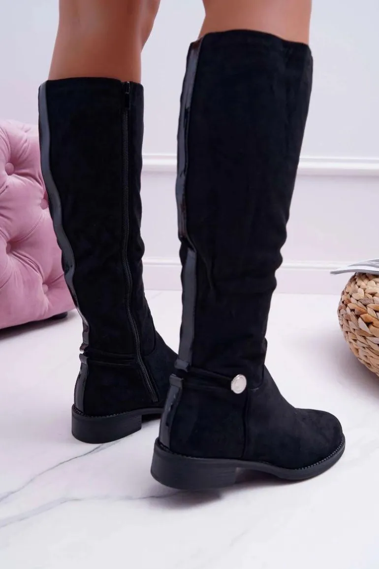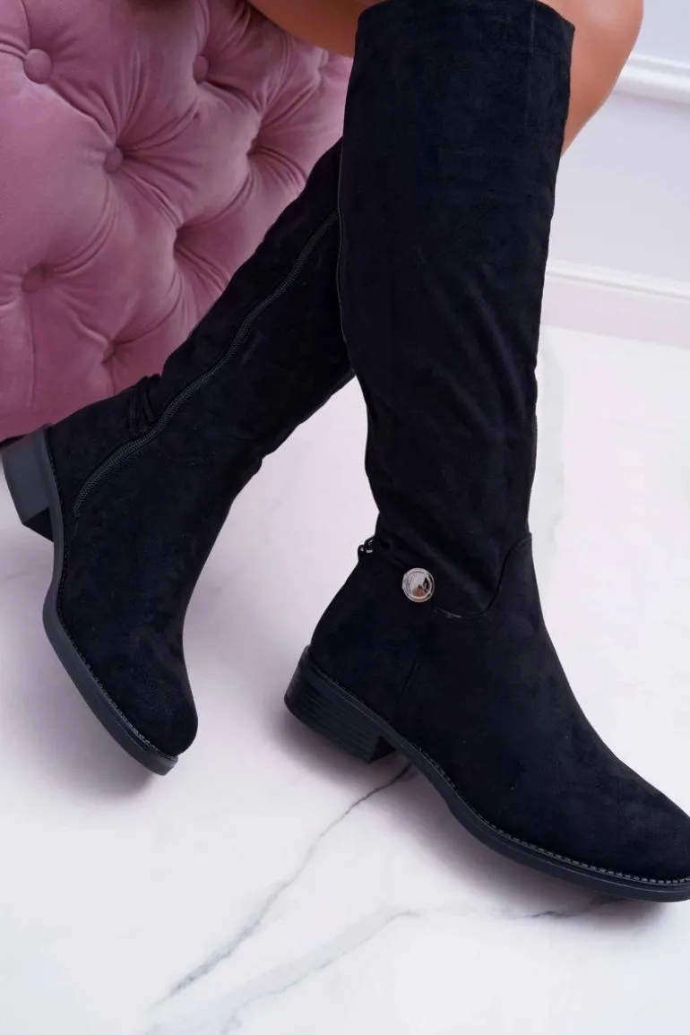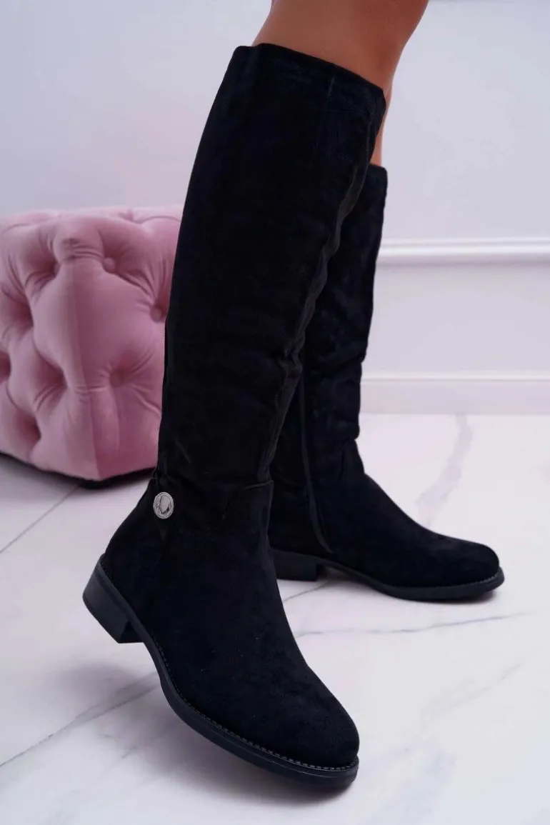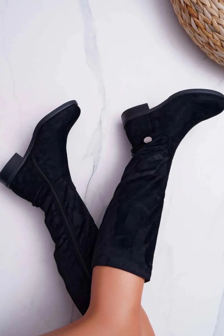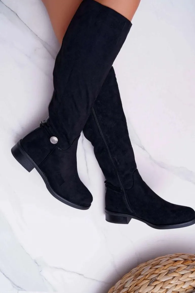 Kozaki Damskie Płaskie Do Kolan Czarne Xomea
