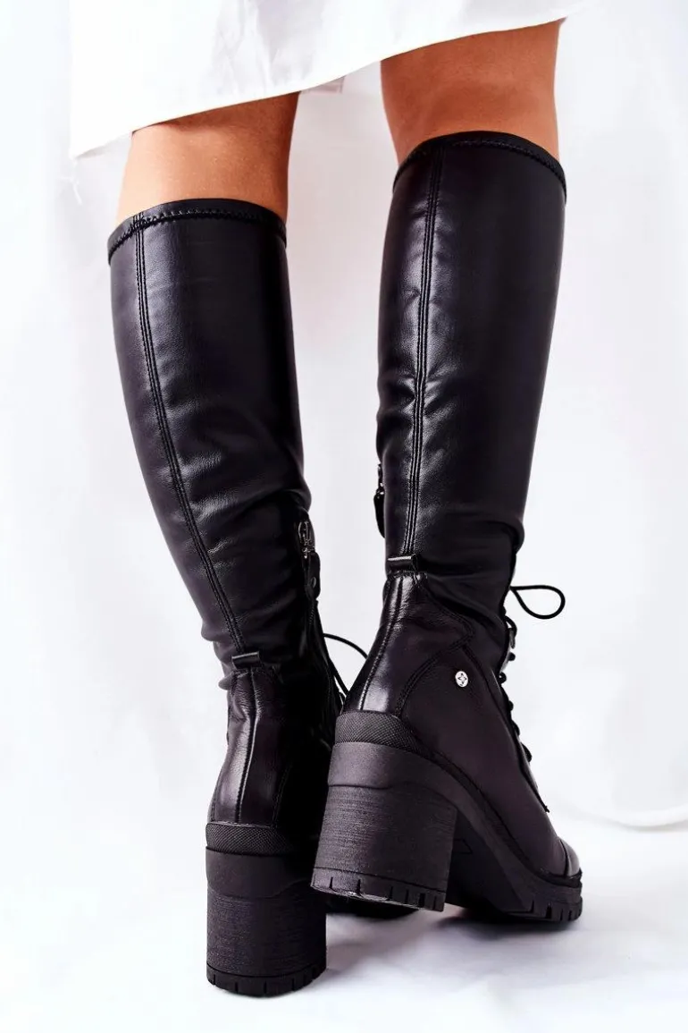 Kozaki renomowanej firmy Maciejka posiadają suwak do połowy cholewki. Wierzch wykonany ze skóry naturalnej, który idealnie podkreśli każdą stylizację. Efektowne wiązanie sprawia, że można je dopasować do własnych wymagań. Wysoka cholewka zapewni Ci dużo ciepła, a miękka wkładka sprawia, że są niezwykle komfortowe w noszeniu. Przy wyborze rozmiaru prosimy kierować tabelą rozmiarów.
