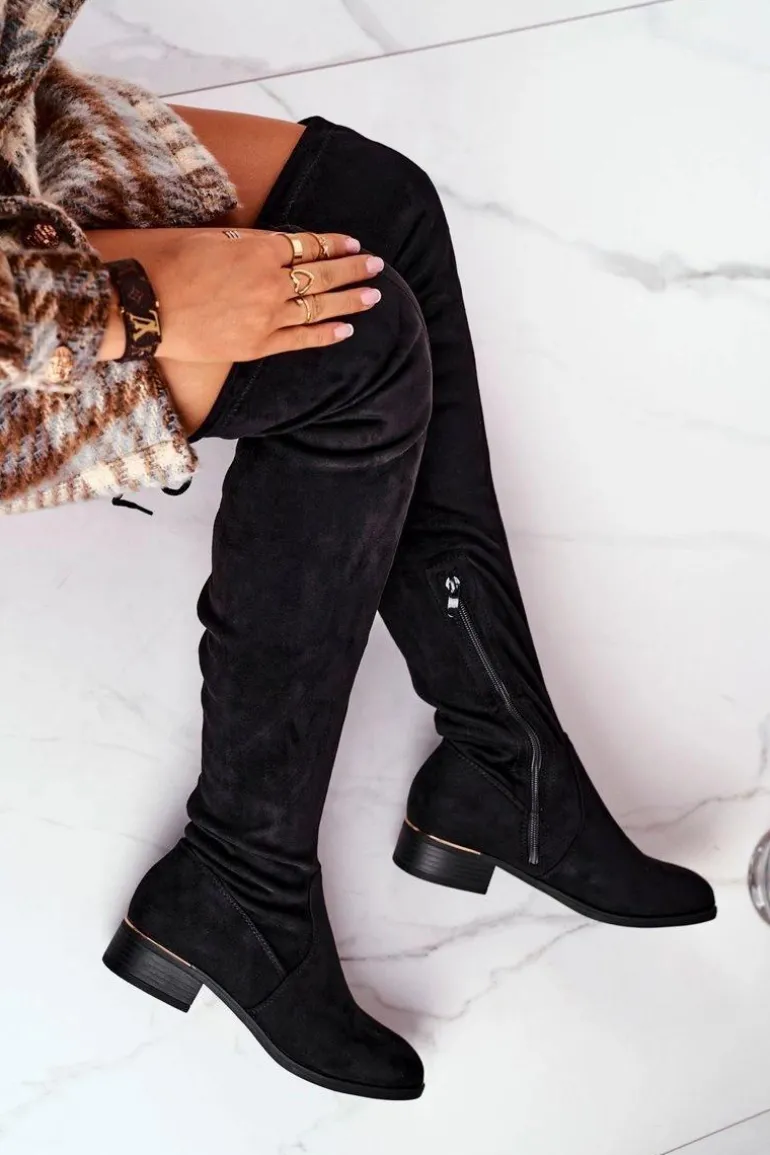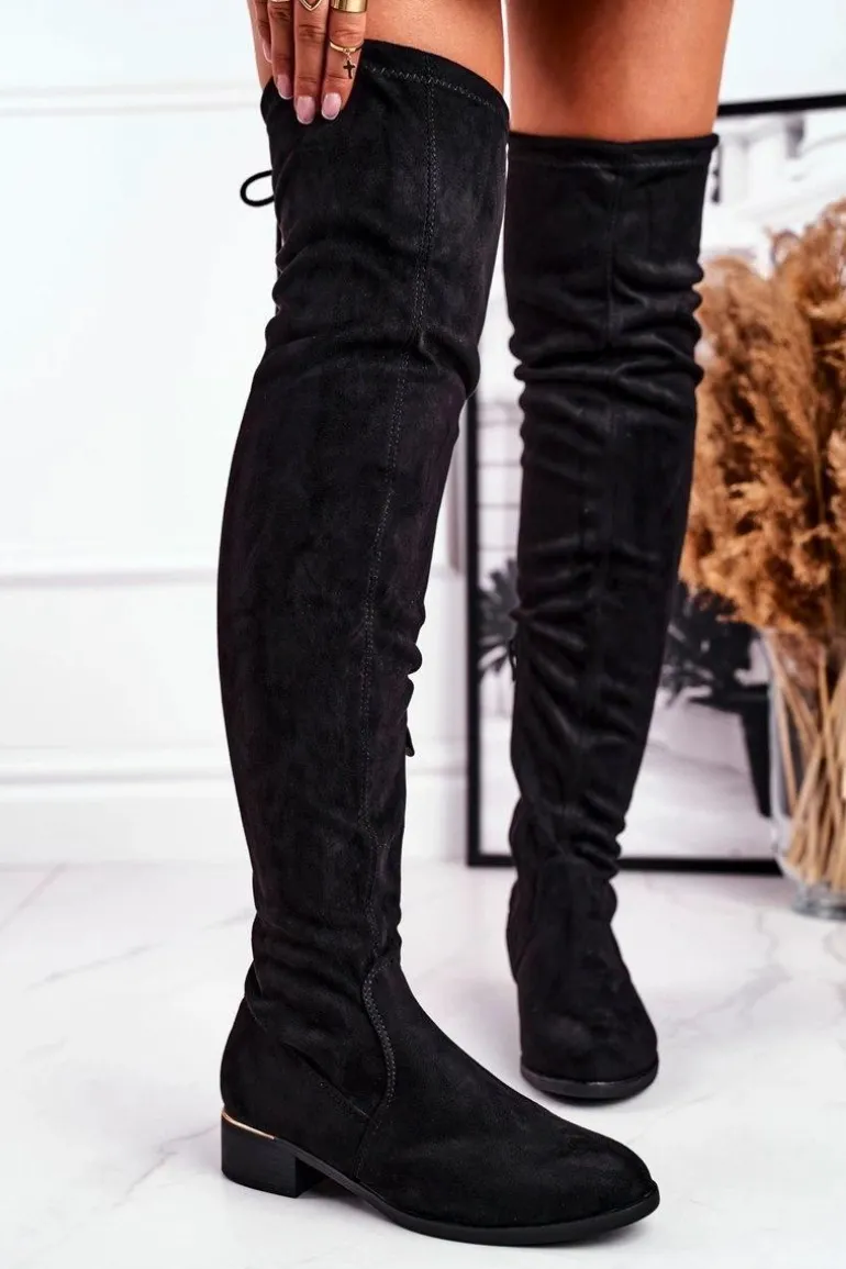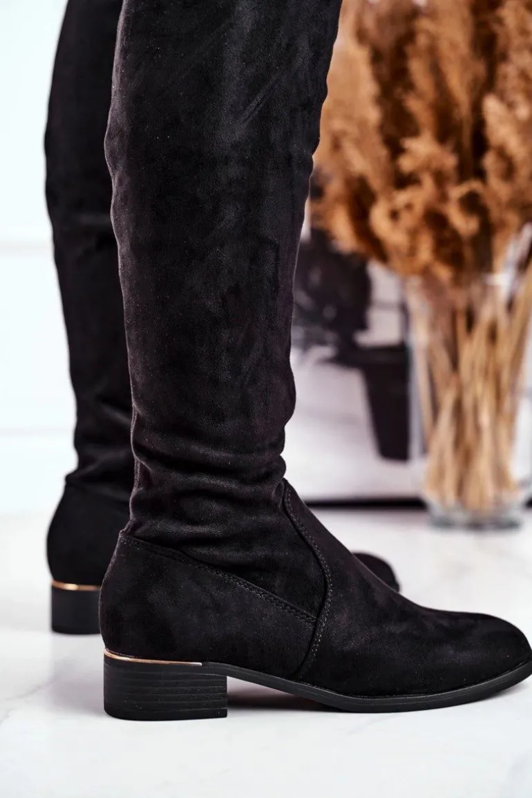Kozaki Damskie Za Kolano Eko-Zamsz Czarne Dove
