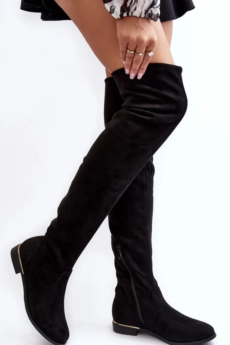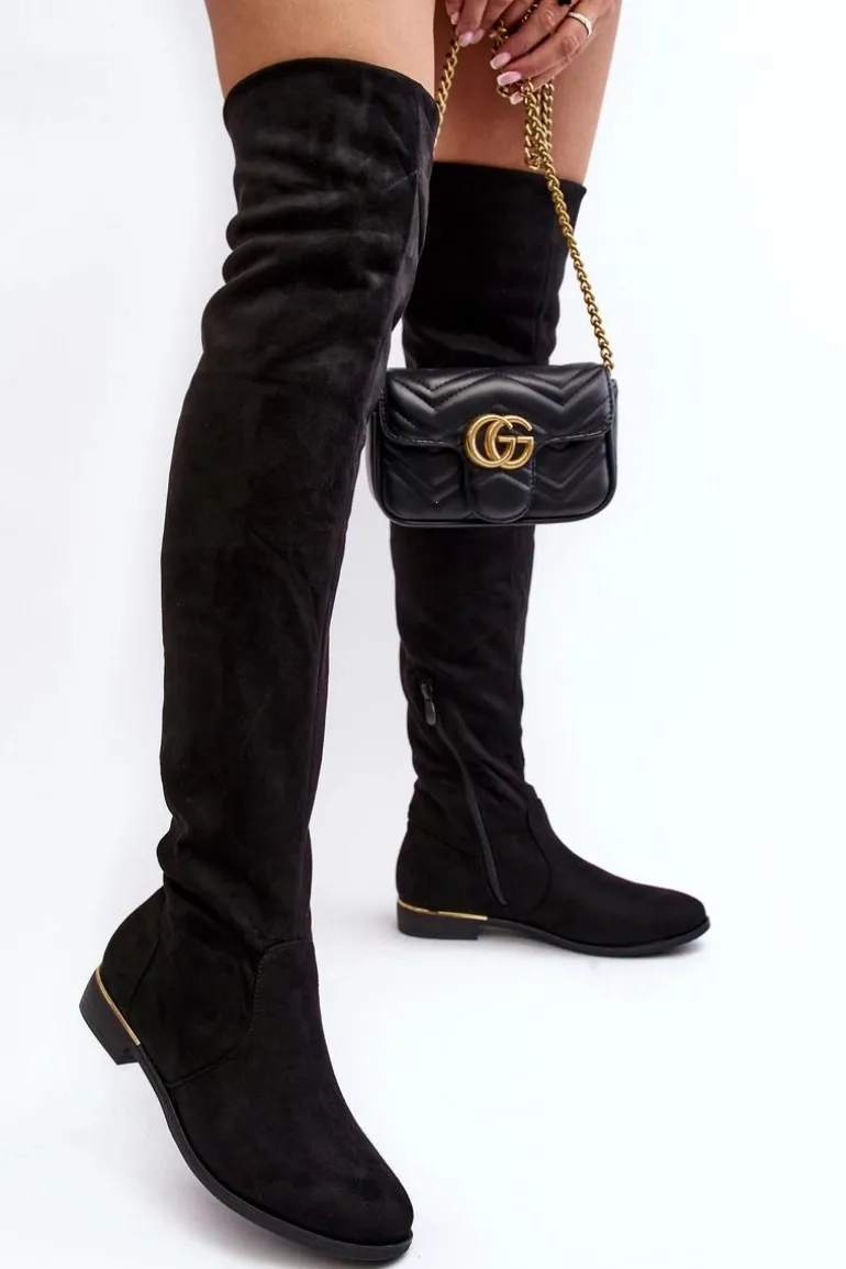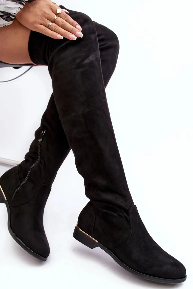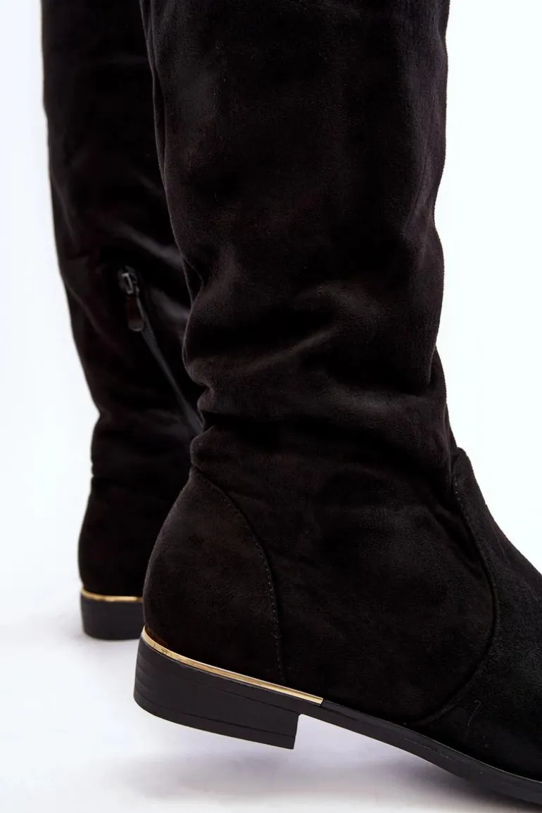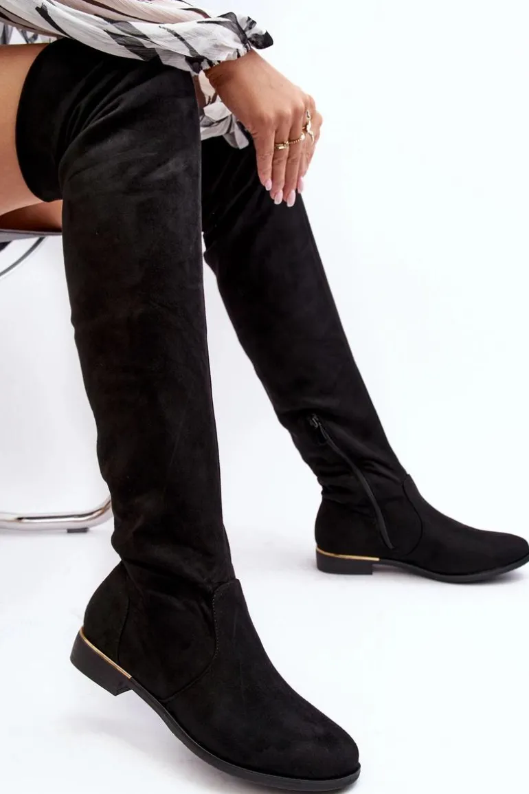 Kozaki Damskie Za Kolano Na Płaskim Obcasie Czarne Bikka