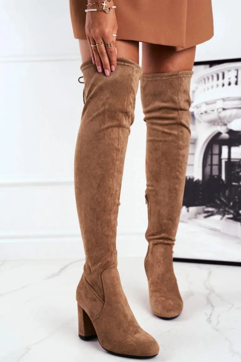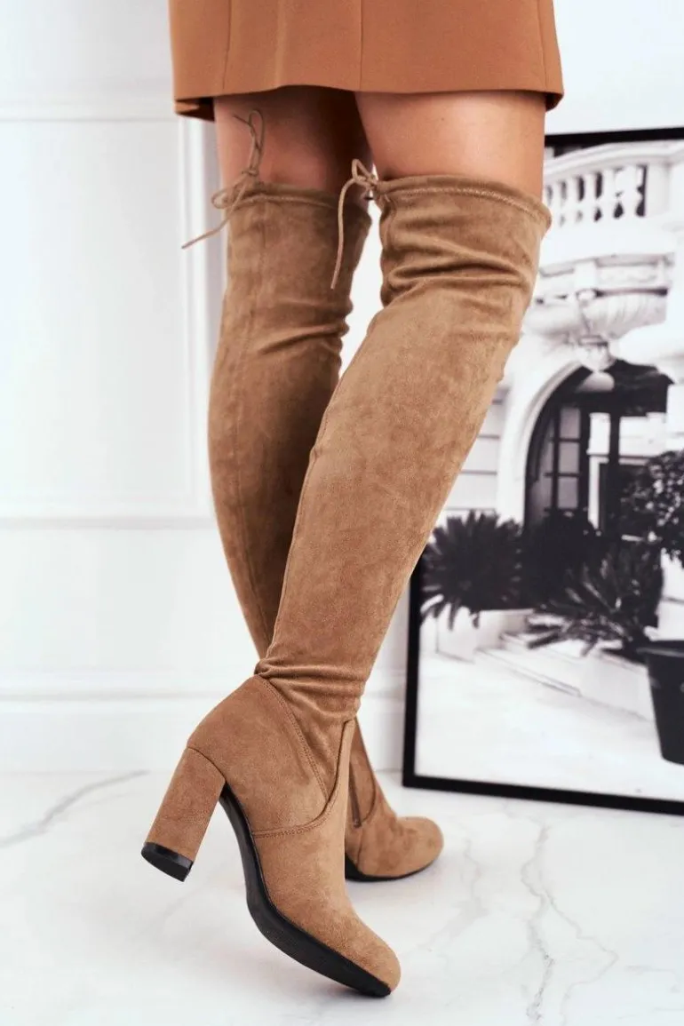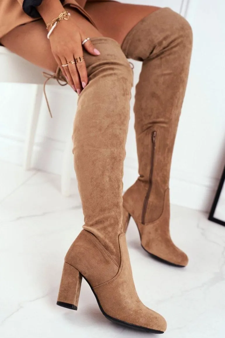Kozaki Damskie Zamszowe Na Słupku Beżowe Highso