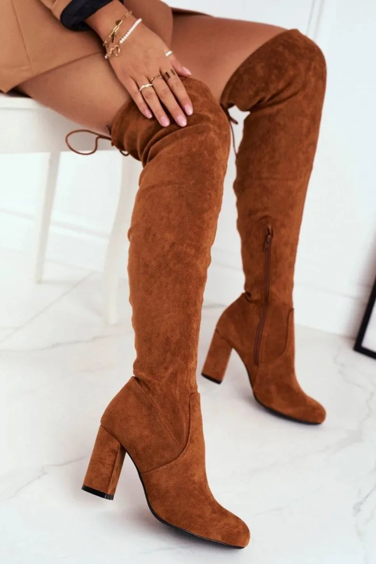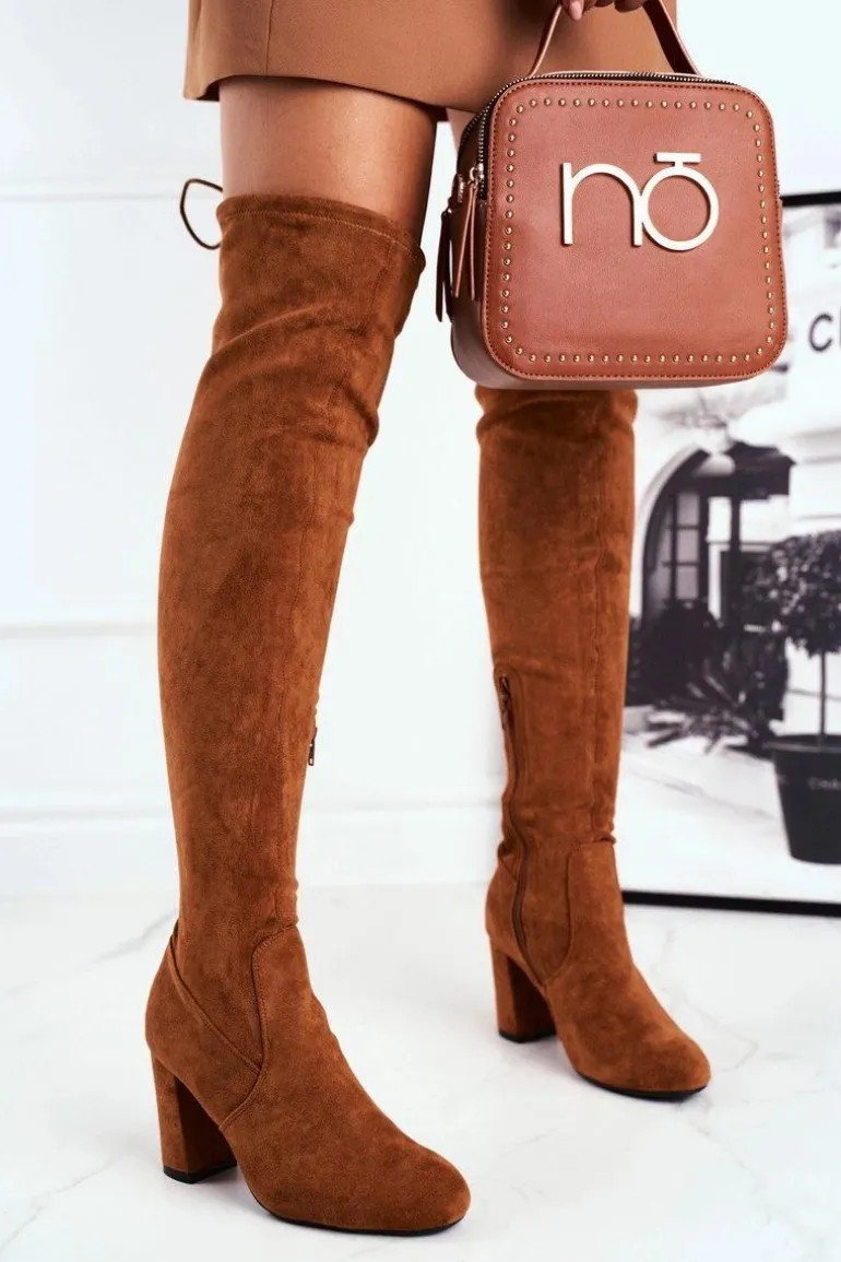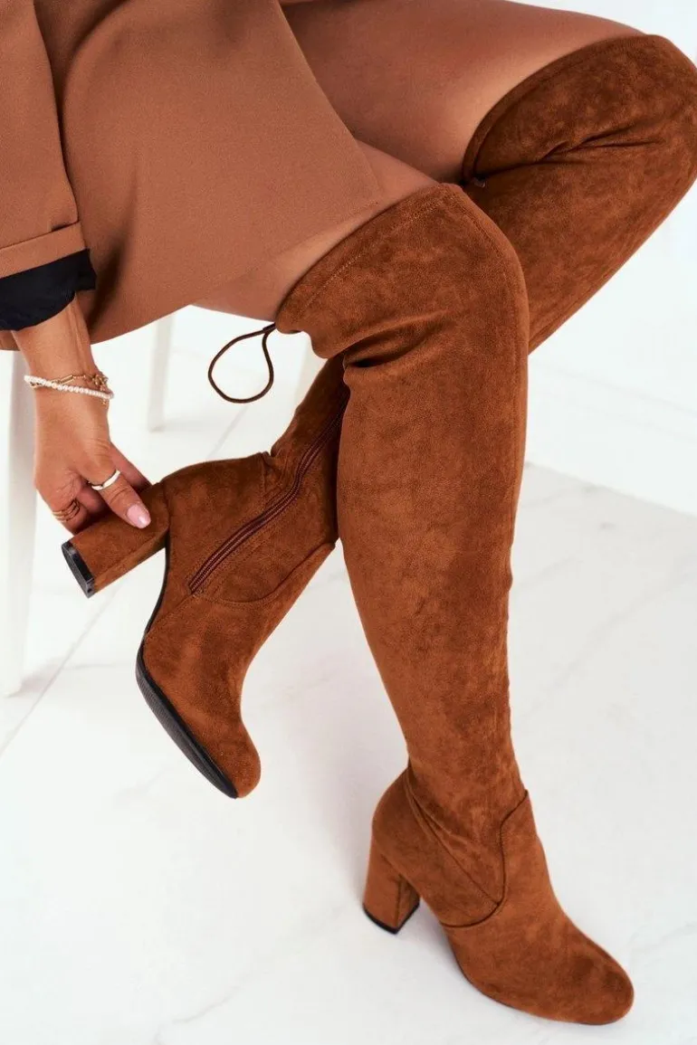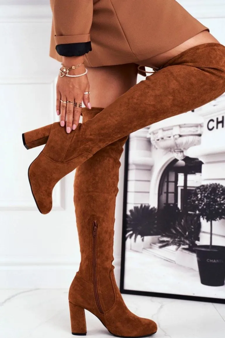 Kozaki Damskie Zamszowe Na Słupku Camel Highso
