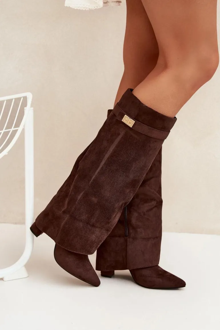Postaw na wygodę, elegancję i ekologiczną jakość z kozakami Eko Zamszowymi z wywiniętą cholewką na słupku!