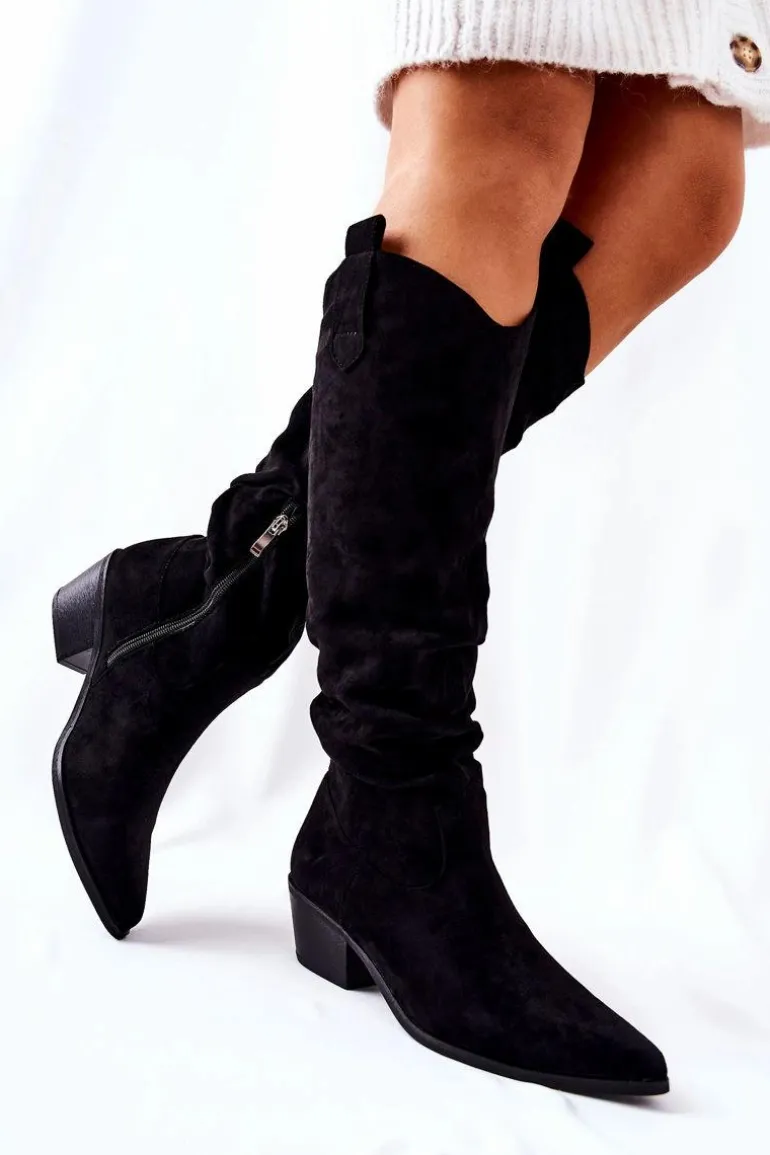 Niepowtarzalny styl kowbojek idealnie pasuje do jesiennych i zimowych stylizacji. Buty wykonane z zamszowej eko skóry. Nosek w szpic. Posiadają w środku ocieplenie w postaci miłego w dotyku koca obuwniczego. Spraw sobie odrobinę luksusu i wybierz nasze wspaniałe kozaki na słupku. Przy wyborze rozmiaru prosimy sugerować się tabelą rozmiarów.