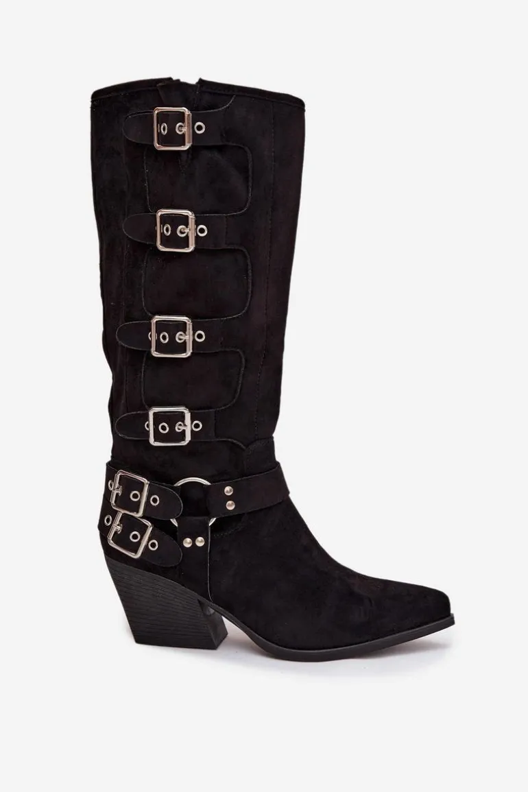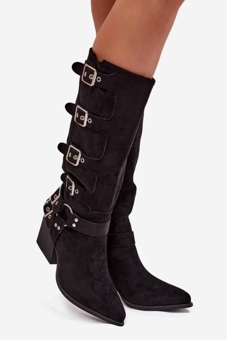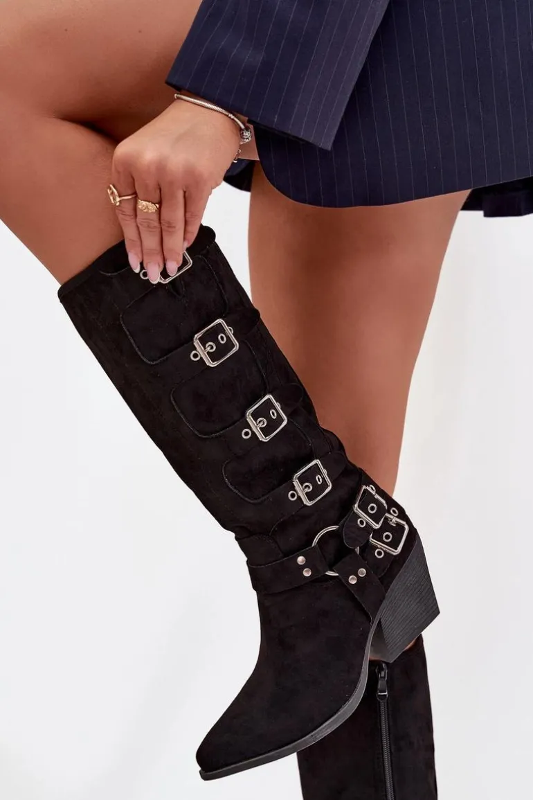 Kozaki kowbojki damskie wykonane z eko zamszu to modna propozycja inspirowana westernowym stylem. Osadzone na ściętym obcasie typu słupek zapewniają wygodę i stabilność, a szpiczaste noski dodają im elegancji oraz smukłego wyglądu. Model zapinany na praktyczny zamek jest łatwy w użytkowaniu, a ozdobne klamry podkreślają charakterystyczny, kowbojski styl. To kozaki, które świetnie sprawdzą się zarówno w casualowych stylizacjach z jeansami, jak i w połączeniu z sukienką czy spódnicą, dodając całości wyrazistego charakteru. Przy wyborze rozmiaru prosimy sugerować się poniższą tabelą rozmiarów.