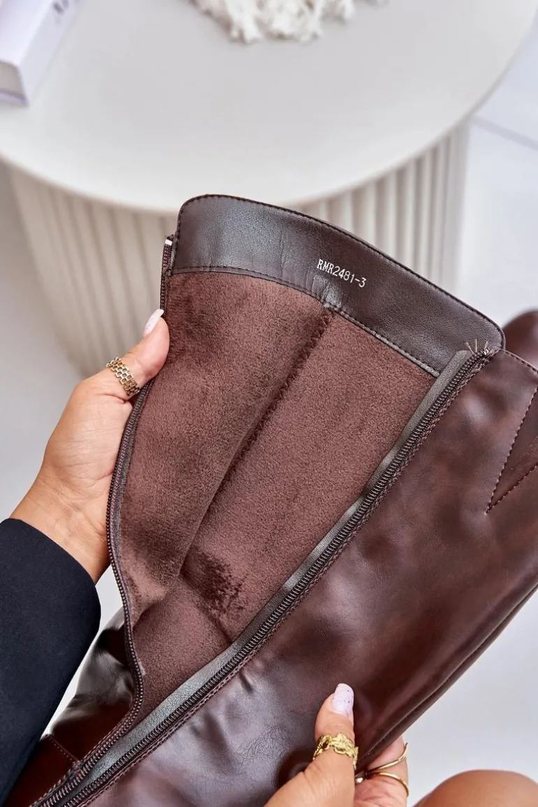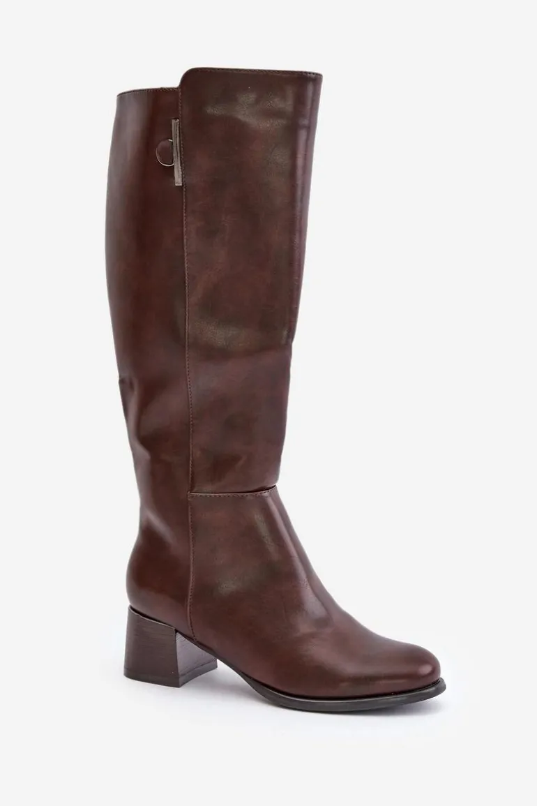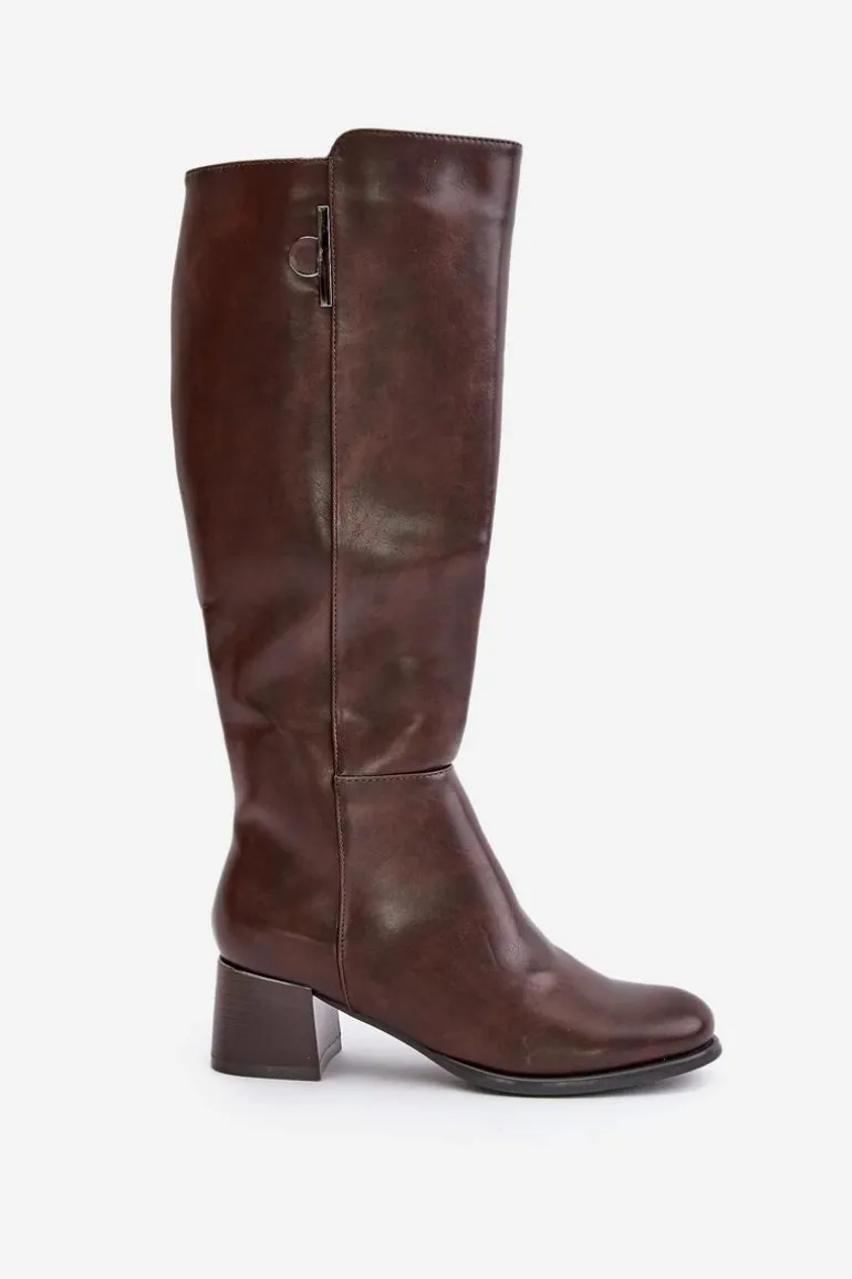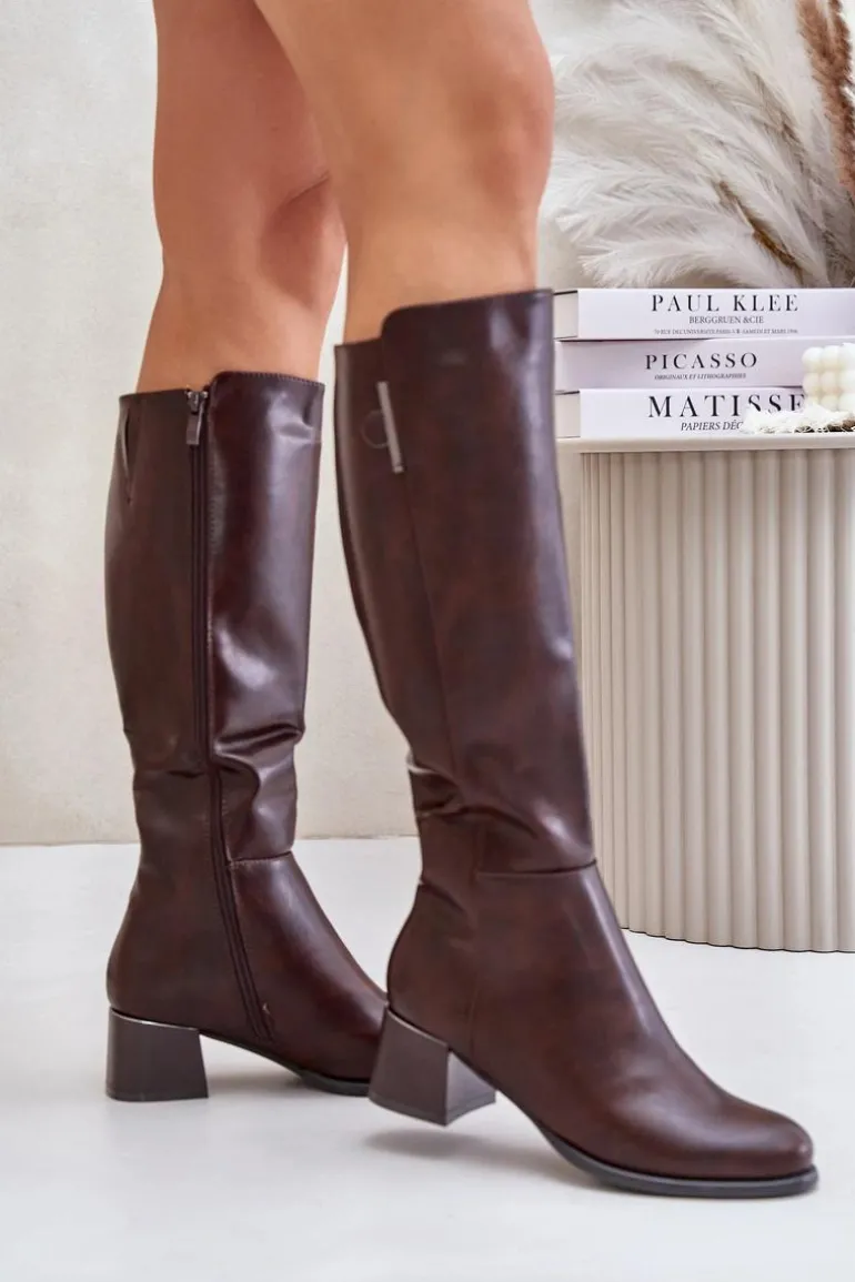 Botki marki Jezzi wykonane z eko skóry to elegancki wybór na chłodniejsze dni. Model osadzony na obcasie typu klocek, który zapewnia stabilność i komfort noszenia. Cholewka sięga przed kolano, dodając stylowego wyglądu i optycznie wydłużając nogi. Zapięcie na zamek ułatwia zakładanie, a ocieplenie kocem obuwniczym gwarantuje ciepło. Model ten idealnie sprawdzi się do stylizacji z sukienkami i spódnicami. Przy wyborze rozmiaru prosimy sugerować się tabelą rozmiarów.