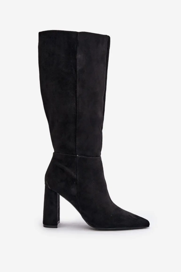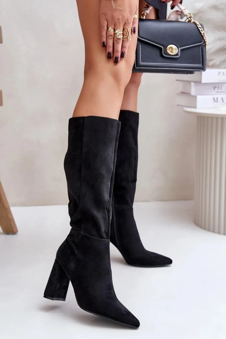 Eleganckie kozaki wykonane z eko zamszu, osadzone na stabilnym obcasie typu słupek, to doskonały wybór na chłodniejsze dni. Zapięcie na zamek ułatwia zakładanie, a szpiczaste noski dodają im wyrafinowanego charakteru. Stylowe i modne, świetnie komponują się z sukienkami i spódnicami, tworząc eleganckie stylizacje na różne okazje. Koniecznie powinnaś je mieć! Przy wyborze rozmiaru prosimy sugerować się tabelą rozmiarów.