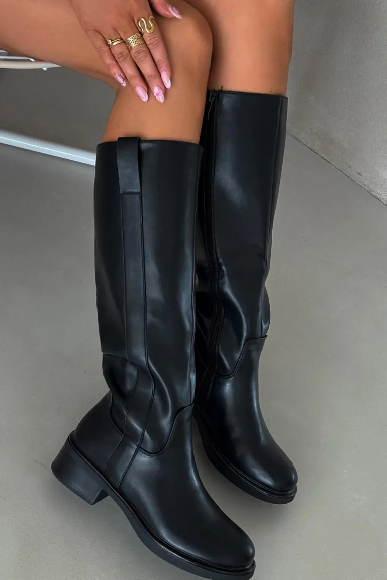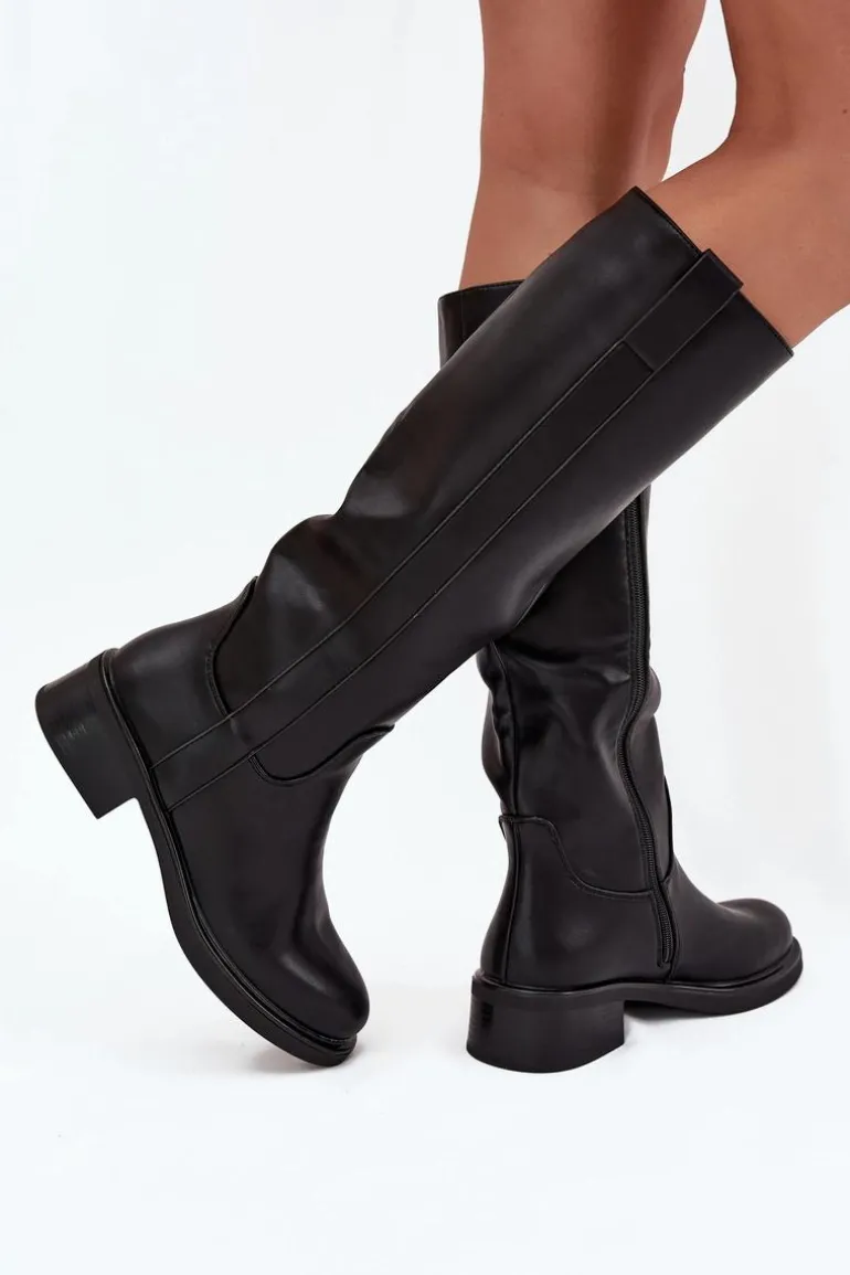 Kozaki oficerki damskie z eko skóry, osadzone na niskim obcasie w formie klocka, to połączenie klasyki z komfortem. Cholewka sięga przed kolano. Zapinane na zamek, co ułatwia ich zakładanie. Ocieplane kocem obuwniczym. Idealne do codziennych stylizacji, doskonale komponują się z sukienkami, spódnicami i spodniami. Przy wyborze rozmiaru prosimy sugerować się tabelą rozmiarów.