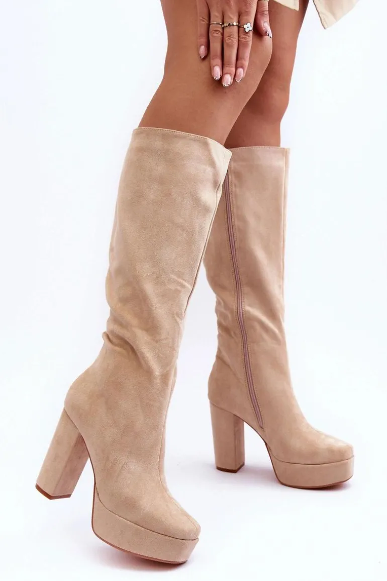 Kozaki Przed Kolano Na Obcasie I Platformie Beżowe Baldrema