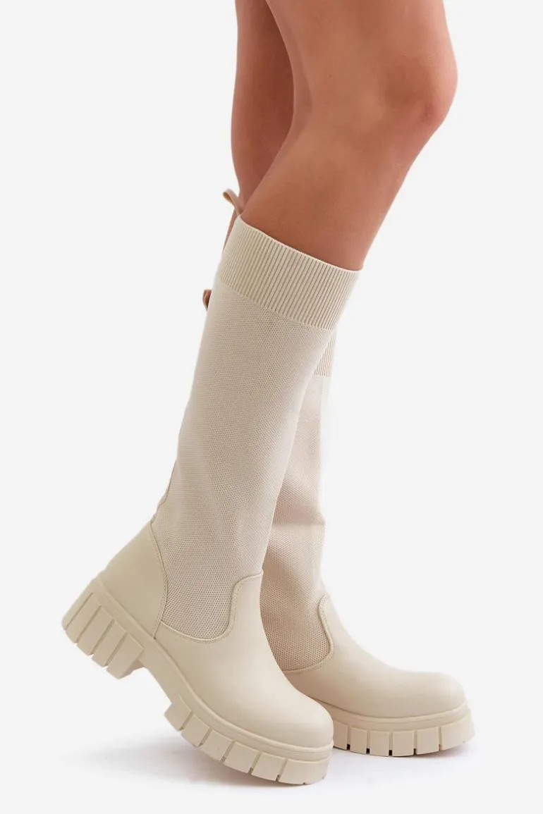 Klasyczne damskie kozaki zostały wykonane z połączenia eko skóry oraz materiału tekstylnego. Osadzone na płaskim obcasie i delikatnej platformie ze żłobieniami. Buty te posiadają ocieplaną wkładkę. Te klasyczne kozaki świetnie będą pasować do jesiennych stylizacji. Modny fason, który powinnaś mieć! Przy wyborze rozmiaru prosimy kierować tabelą rozmiarów.