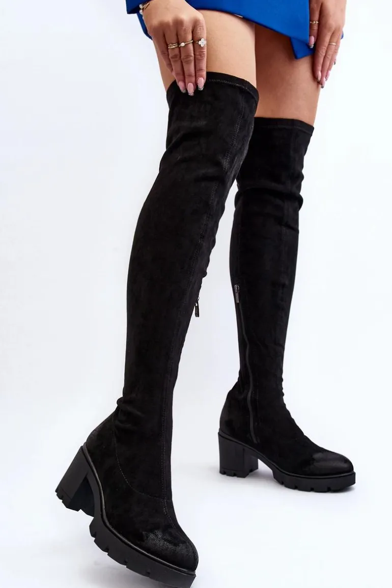Kozaki damskie zostały wykonane z wysokiej jakości eko zamszu z dbałością o szczegóły. Osadzone na grubej podeszwie oraz obcasie w postaci słupka. Model wsuwany, z dodatkowym zapięciem na suwak. Noski zaokrąglone. Ocieplone wyłącznie na wysokości stopy lekkim futerkiem. Cholewka za kolano. Koniecznie musisz je mieć! Przy wyborze rozmiaru prosimy sugerować się tabelą rozmiarów.