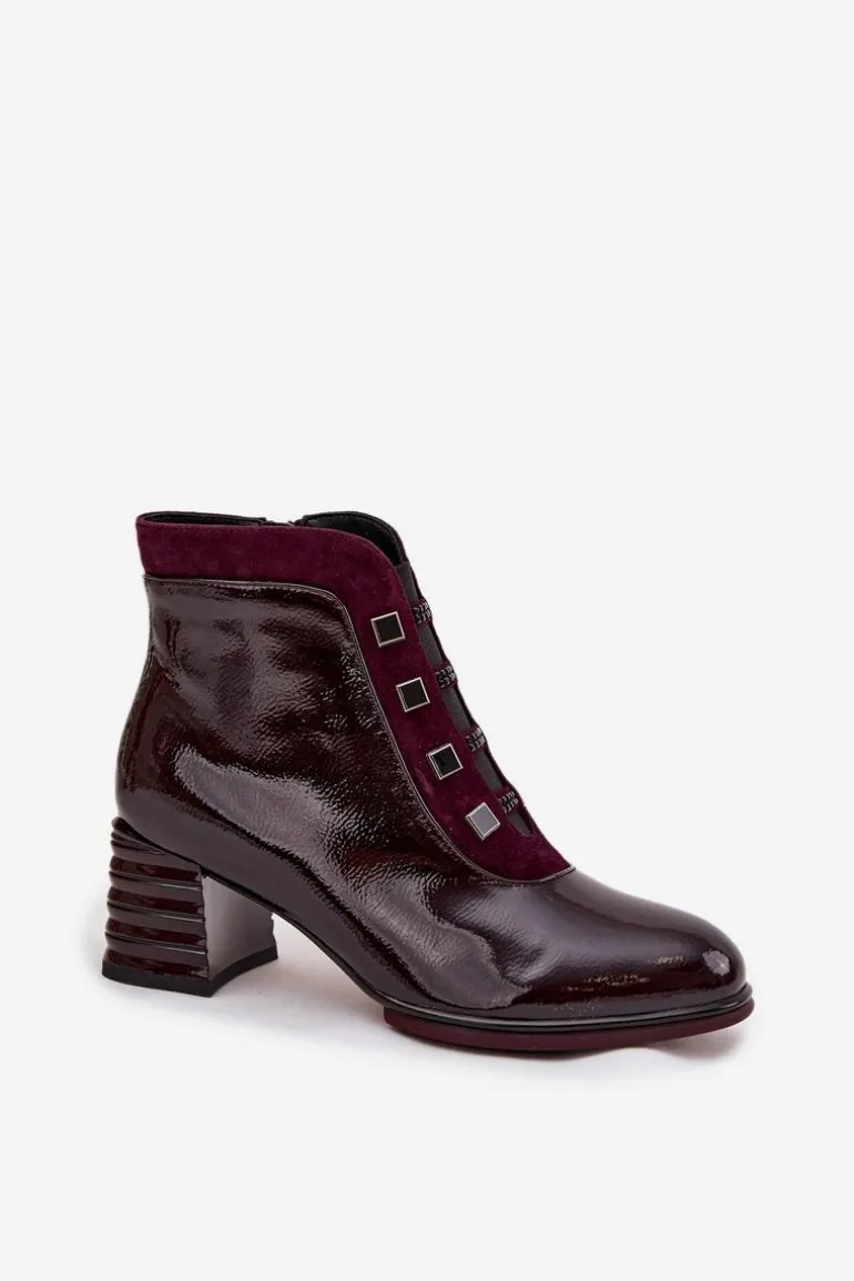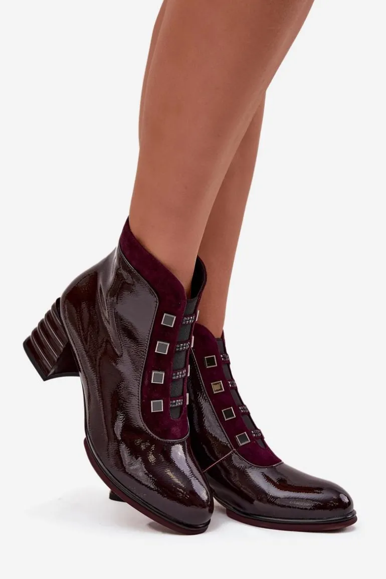 Botki damskie wykonane z naturalnej, lakierowanej skóry to propozycja dla kobiet, które cenią elegancję w nowoczesnym wydaniu. Połyskująca powierzchnia skóry nadaje im wyjątkowego charakteru i sprawia, że świetnie prezentują się zarówno w codziennych, jak i bardziej wyjściowych stylizacjach. Z przodu umieszczono ozdobne detale, które podkreślają unikalny wygląd. Zaokrąglone noski. Zapięcie na zamek ułatwia zakładanie i zdejmowanie. Wnętrze wykończono miękkim w dotyku kocem obuwniczym, który delikatnie ociepla i gwarantuje komfort w chłodniejsze dni. To botki, które doskonale sprawdzą się w sezonie jesienno-zimowym, stanowiąc elegancki i uniwersalny element kobiecej garderoby. Przy wyborze rozmiaru prosimy sugerować się tabelą rozmiarów.