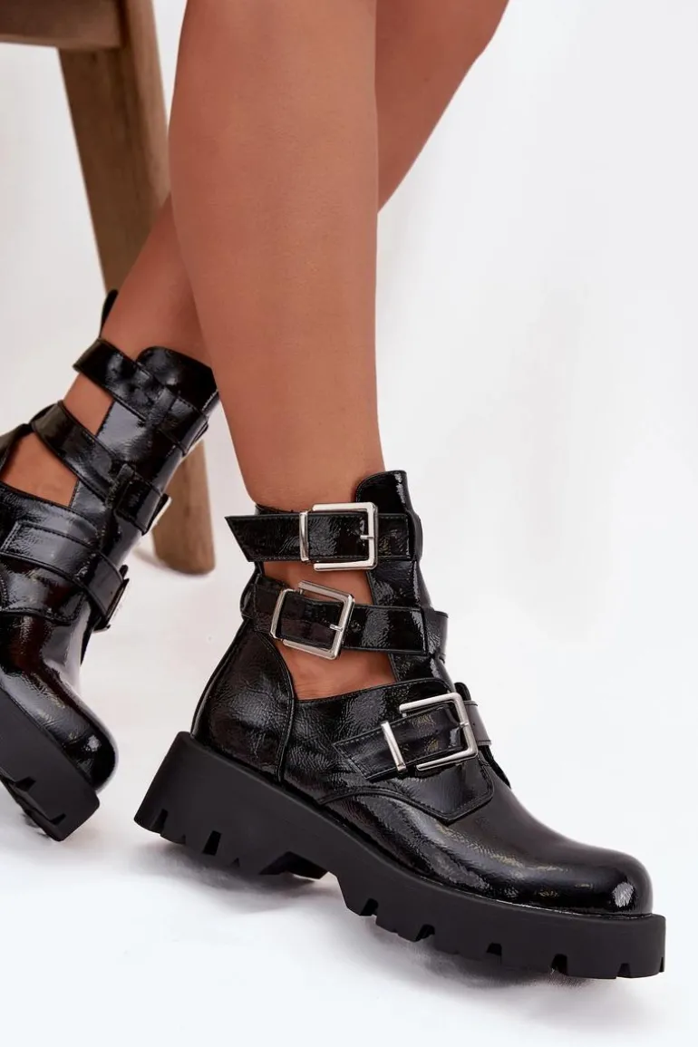 Damskie botki na płaskim obcasie to połączenie wygody i modnego wyglądu. Model wyróżnia się wycięciami, które dodają lekkości i nowoczesnego charakteru, a paski ze srebrnymi klamrami wprowadzają subtelny, elegancki detal. Zaokrąglone noski zapewniają komfort podczas chodzenia, a wsuwany fason umożliwia szybkie i wygodne zakładanie butów. Stylowy fason sprawia, że botki świetnie sprawdzą się zarówno w codziennych, casualowych zestawach, jak i w nieco bardziej wyjściowych stylizacjach, dodając im modnego akcentu. Przy wyborze rozmiaru prosimy sugerować się tabelą rozmiarów.