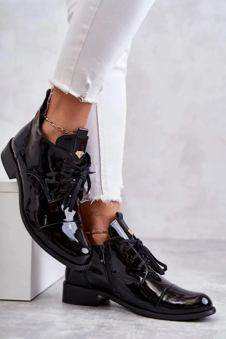 Damskie botki zostały wykonane z naturalnych skór najwyższej jakości z dbałością o szczegóły. Model posiada klasyczne sznurowanie oraz suwak z boku cholewki. Dodatkowo zapiętek jest usztywniany. Płaski obcas w tych botkach zapewnia stabilność podczas użytkowania. Nie są ocieplane. Miękka, wykonana z naturalnej skóry wkładka zapewni komfort podczas użytkowania. Przy wyborze rozmiaru prosimy sugerować się tabelą rozmiarów.