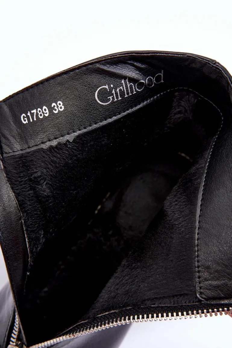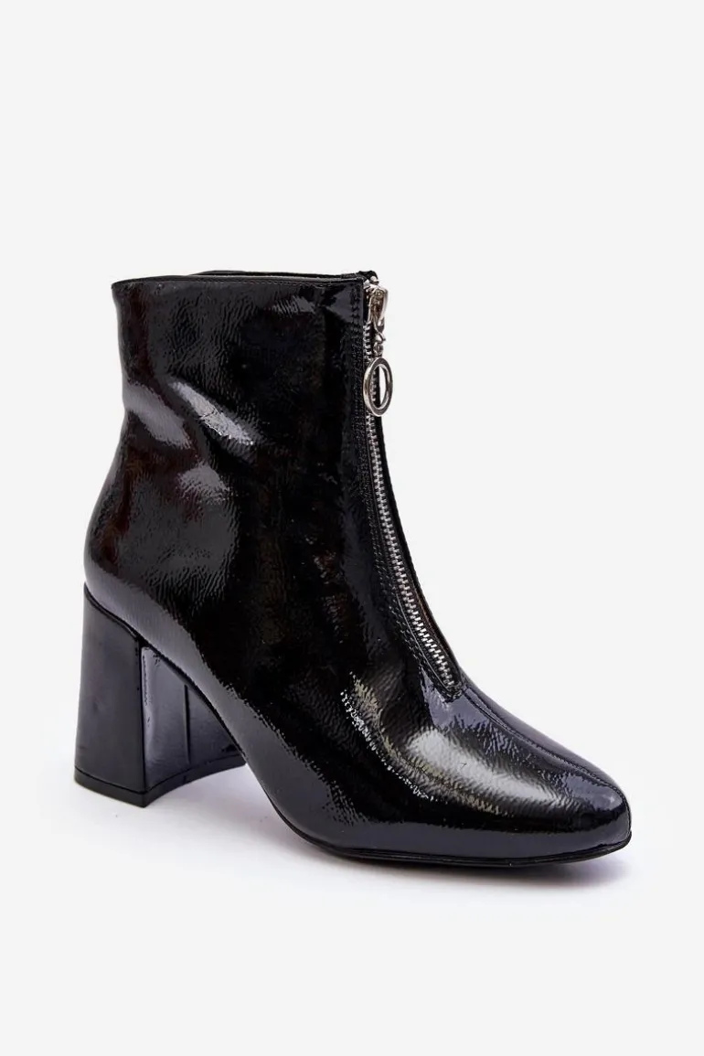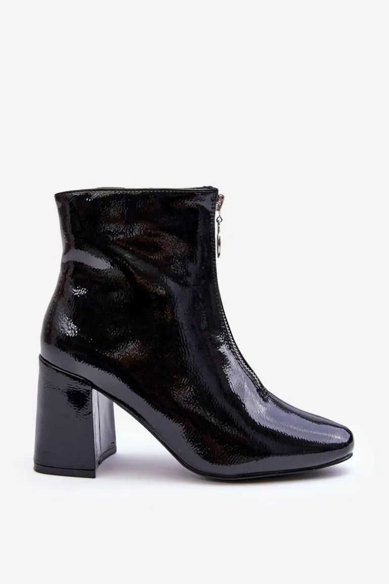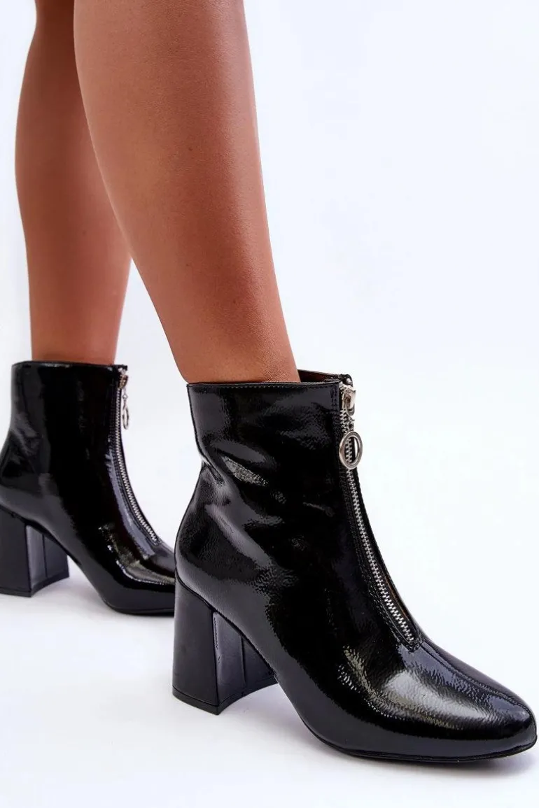 Modne, damskie botki posiadają cholewkę za kostkę oraz migdałowy nosek. Wykonane z eko skóry. Posiadają zapięcie na zamek błyskawiczny z przodu cholewki. Botki osadzono na obcasie w postaci słupka. Wewnątrz zostały ocieplone miękkim kocem obuwniczym. Dodatkowo posiadają usztywniany zapiętek. Przy wyborze rozmiaru prosimy sugerować się tabelą rozmiarów.