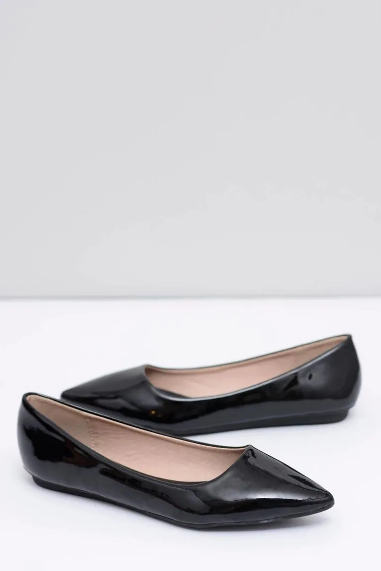 Lakierowane Czarne Balerinki w Szpic Elonde