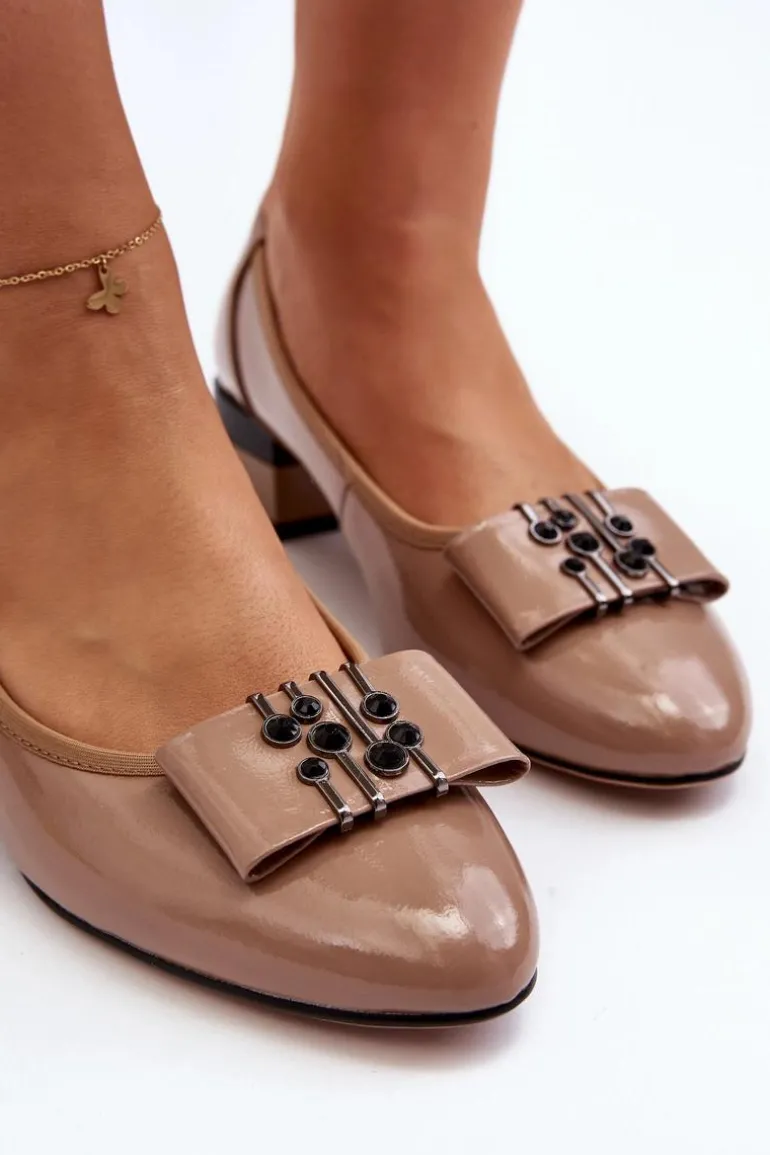 Wygodne czółenka z miękką wkładką z naturalnej skóry zapewnią komfortowe użytkowanie obuwia nawet przez cały dzień! Osadzone na obcasie w postaci klocka. Idealny model do pracy czy na uroczystość rodzinną. Buty posiadają z przodu cholewki ozdobę. Noski w migdał. Usztywniony zapiętek zwiększy stabilizacje stopy. Koniecznie musisz je mieć! Przy wyborze rozmiaru prosimy sugerować się tabelą rozmiarów.