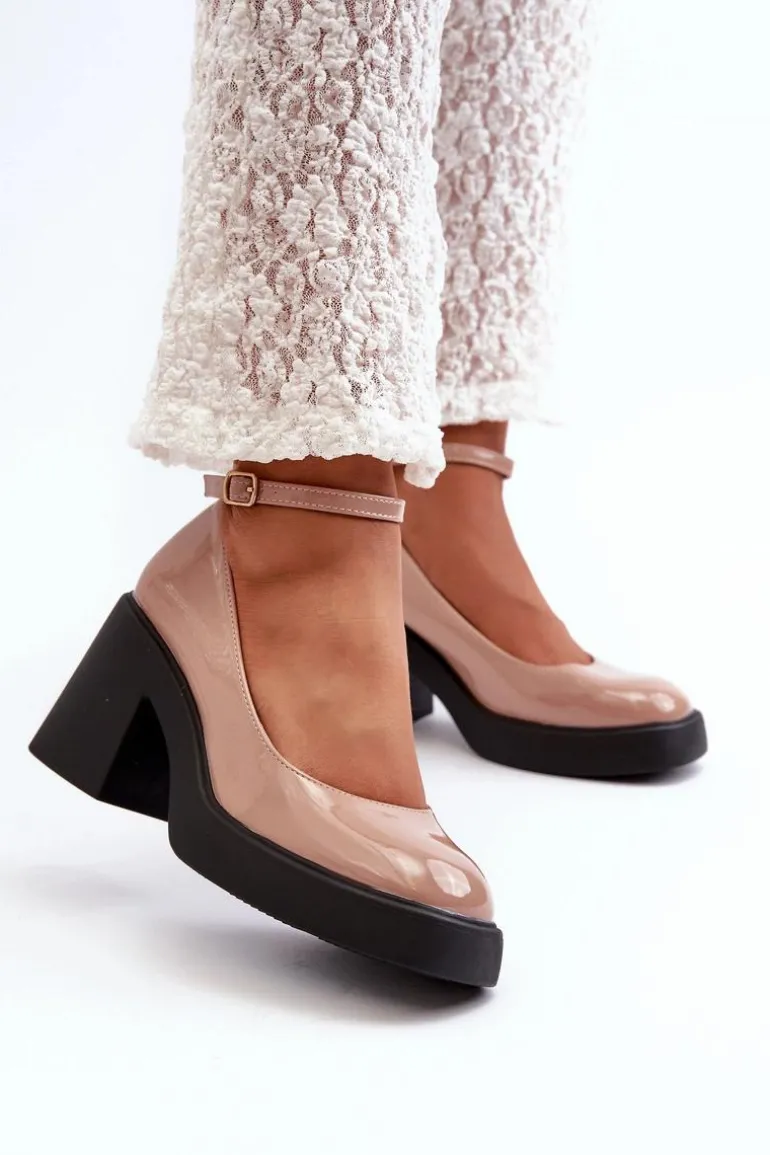 Wyjątkowe czółenka wykonane ze skóry ekologicznej. Zapinane na regulowany pasek ze sprzączką, co zapewnia idealne dopasowanie do stopy. Osadzone na masywnym, wyższym obcasie w postaci klocka. Zapiętek jest usztywniany, a nosek kwadratowy. Dodatkowo buty posiadają delikatną platformę. Przy wyborze rozmiaru prosimy sugerować się tabelą rozmiarów.