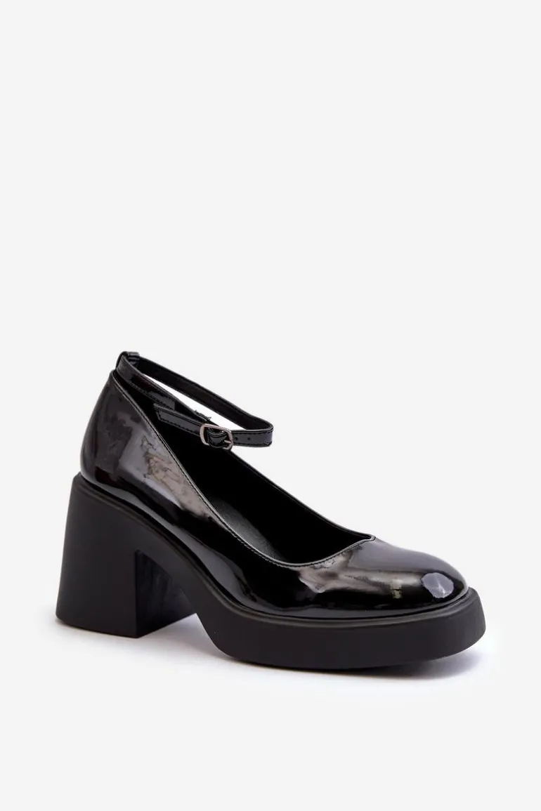 Wyjątkowe czółenka wykonane ze skóry ekologicznej. Zapinane na regulowany pasek ze sprzączką, co zapewnia idealne dopasowanie do stopy. Osadzone na masywnym, wyższym obcasie w postaci klocka. Zapiętek jest usztywniany, a nosek kwadratowy. Dodatkowo buty posiadają delikatną platformę. Przy wyborze rozmiaru prosimy sugerować się tabelą rozmiarów.