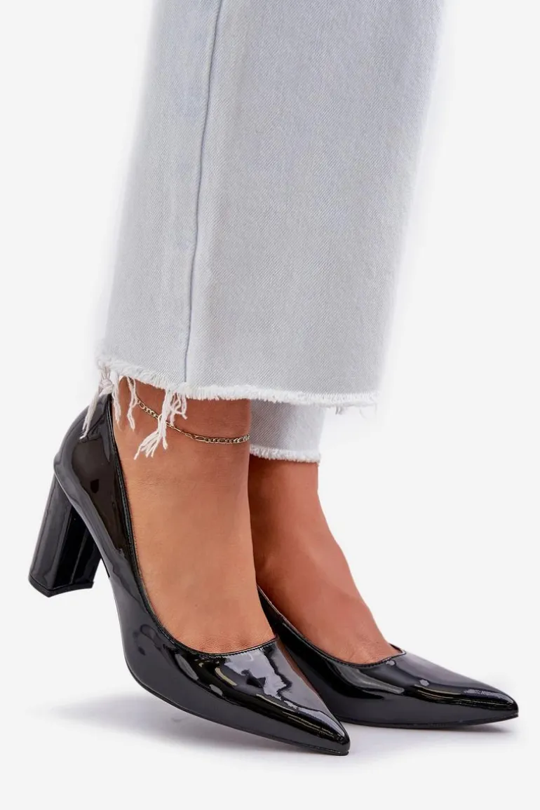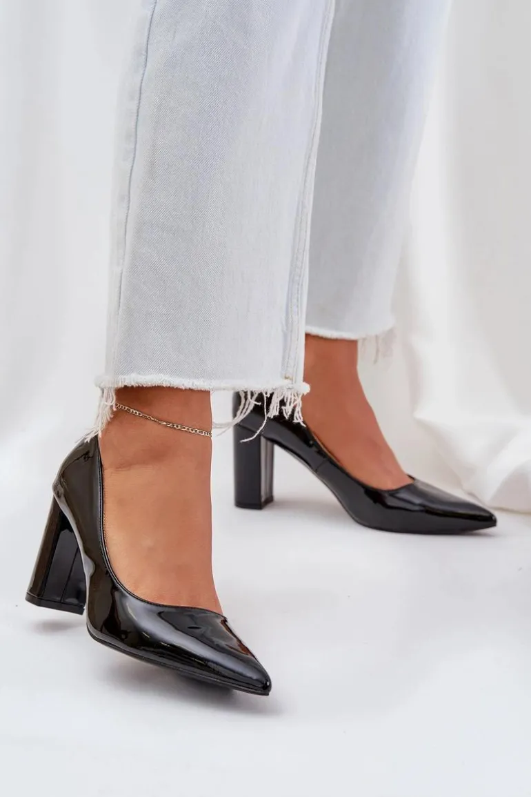 Lakierowane czółenka z eko skóry to elegancka propozycja, która doda szyku każdej stylizacji. Osadzone na obcasie słupku, zapewniają stabilność i wygodę przez cały dzień. Noski w szpic dodają im wyrafinowanego charakteru, a miękka wkładka gwarantuje komfort noszenia. Te czółenka to doskonały wybór na wieczorne wyjścia lub formalne spotkania. Przy wyborze rozmiaru prosimy kierować się tabelą rozmiarów