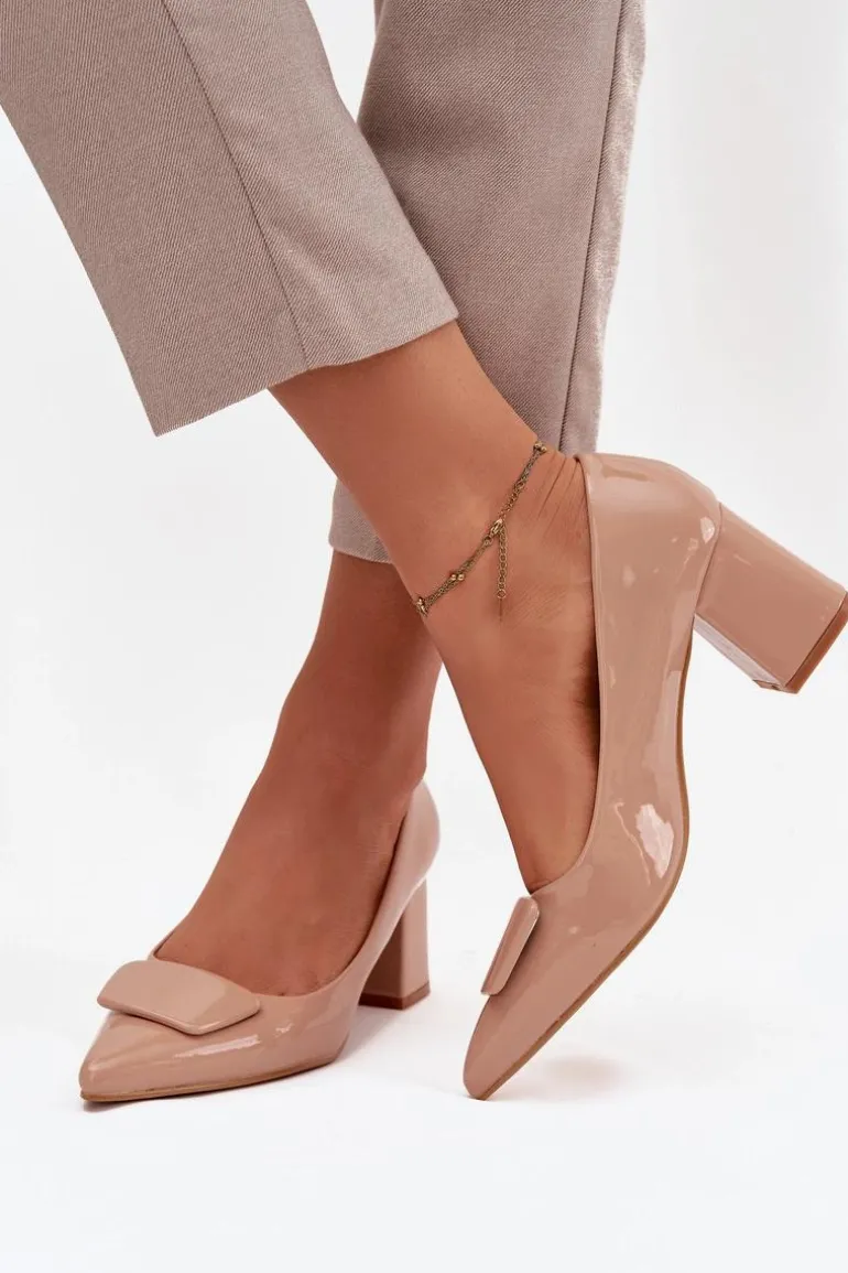 Czółenka damskie wykonane z eko skóry to klasyczna propozycja, która łączy ponadczasową elegancję z komfortem noszenia. Model osadzony na stabilnym obcasie typu słupek zapewnia wygodę przez cały dzień, a szpiczaste noski optycznie wydłużają nogi, podkreślając kobiecy charakter. Z przodu znajduje się ozdobny detal. To idealne czółenka do eleganckich stylizacji – świetnie sprawdzą się zarówno w pracy, jak i podczas wyjątkowych okazji, doskonale komponując się z sukienkami, spódnicami i klasycznymi spodniami. Przy wyborze rozmiaru prosimy kierować się tabelą rozmiarów.