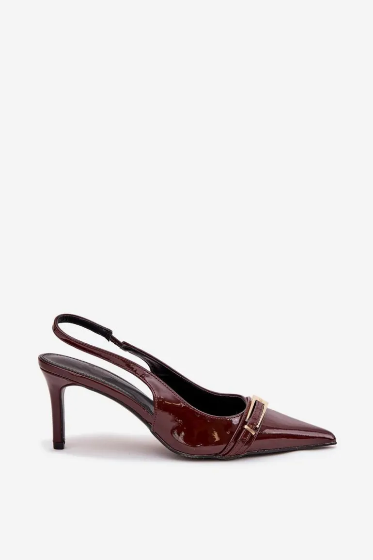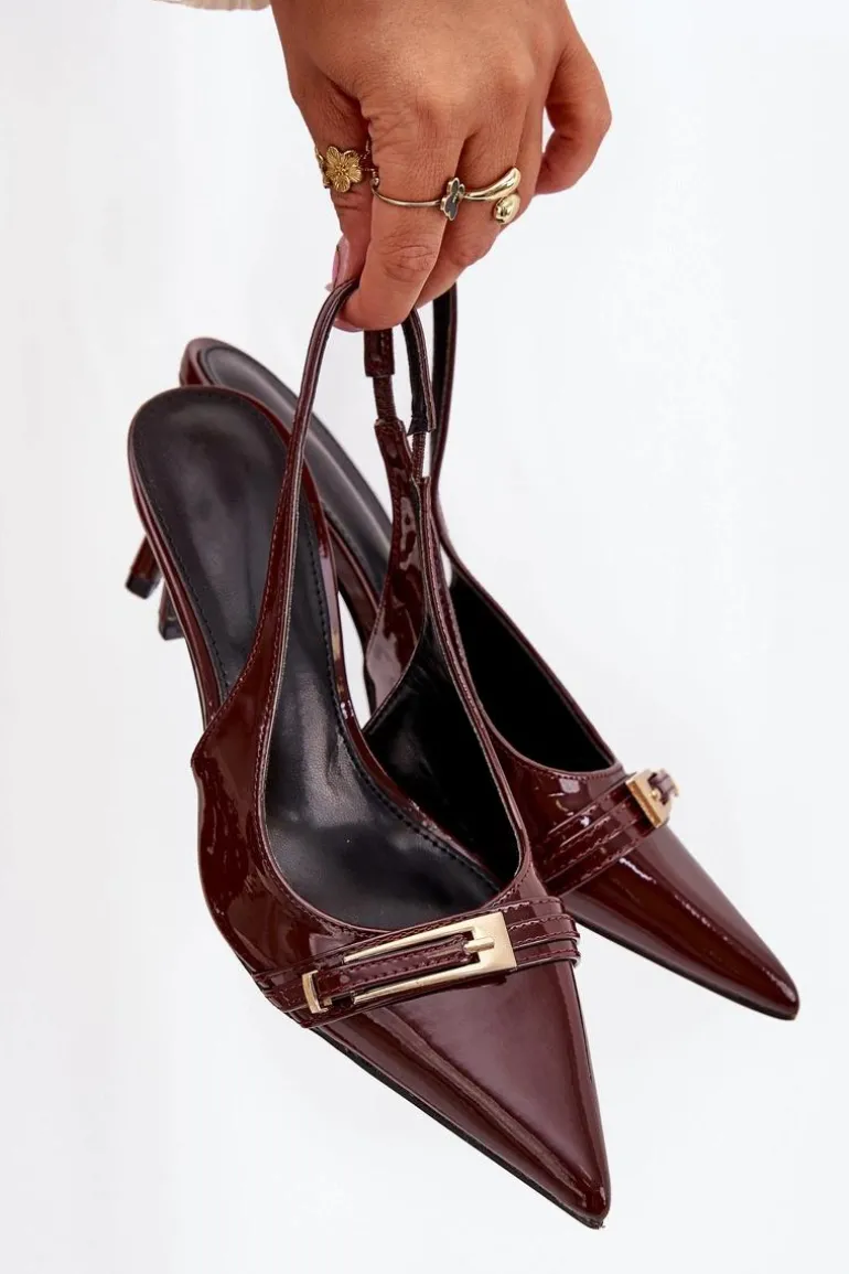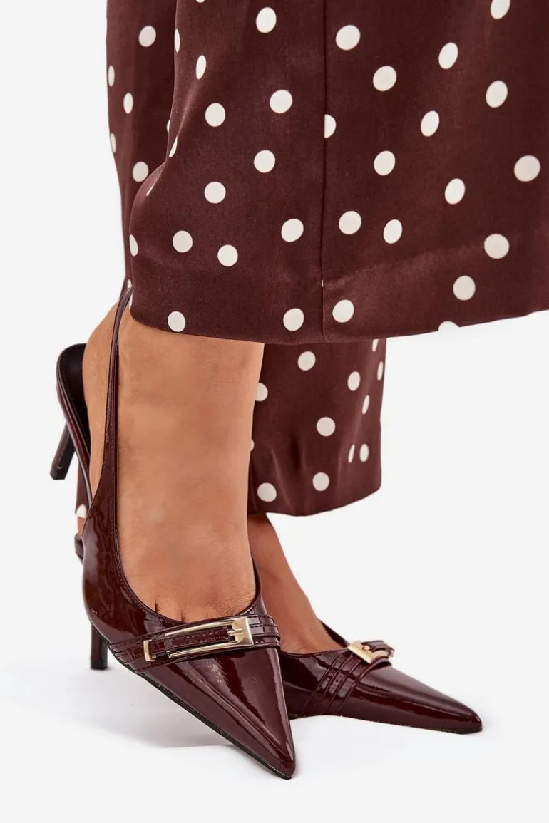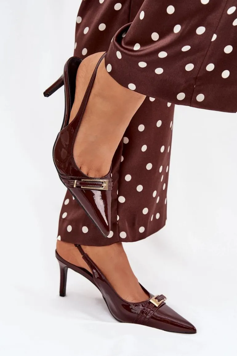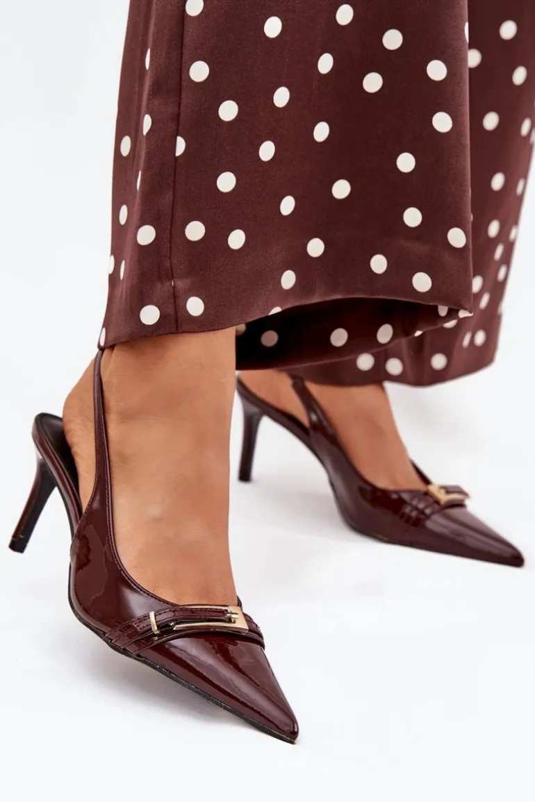 Stylowe i eleganckie czółenka z eko skóry, osadzone na obcasie w formie szpilki, to połączenie klasyki z nowoczesnym akcentem. Z przodu buta znajduje się paseczek ozdobiony złotą klamrą, który dodaje im wyjątkowego szyku. Szpiczaste noski optycznie wysmuklają nogi, nadając sylwetce elegancki wygląd. Idealne na wieczorne wyjścia, specjalne okazje lub eleganckie spotkania. Przy wyborze rozmiaru prosimy kierować się tabelą rozmiarów