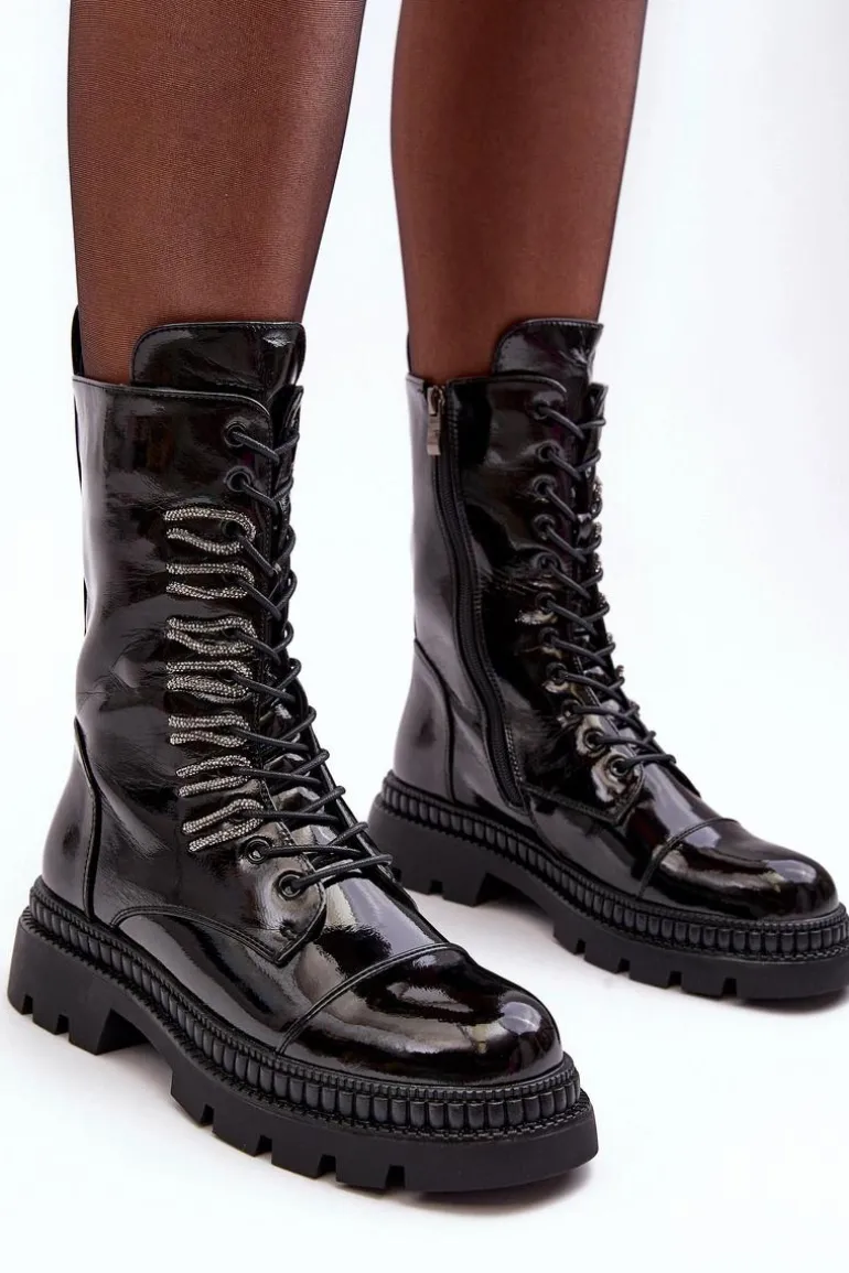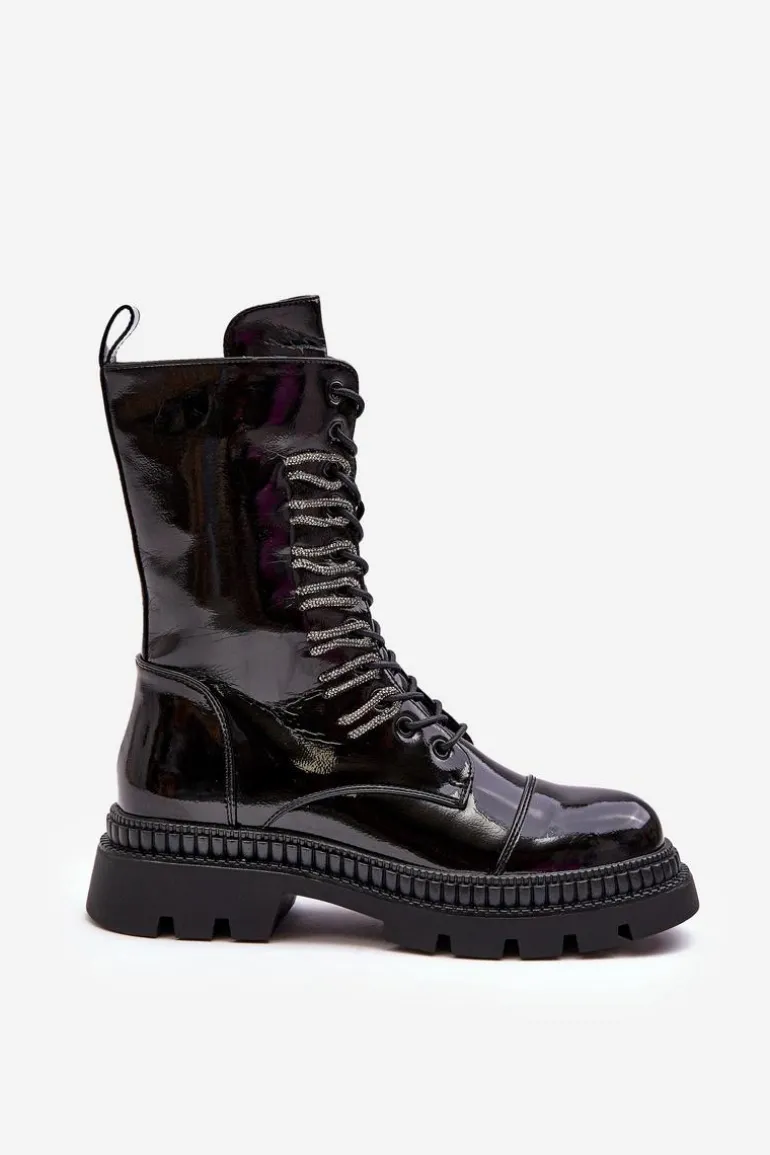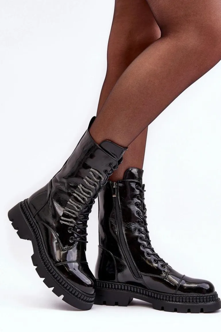 Damskie botki w stylu workerów zostały wykonane z wysokiej jakości eko skóry. Osadzone na płaskim obcasie i platformie. Z przodu sznurowanie oraz suwak z boku cholewki ułatwiający zakładanie obuwia. Środek ocieplony kocem obuwniczym. Noski zaokrąglone. Ten model na pewno wykorzystasz w wielu stylizacjach! Przy wyborze rozmiaru prosimy sugerować się tabelą rozmiarów.