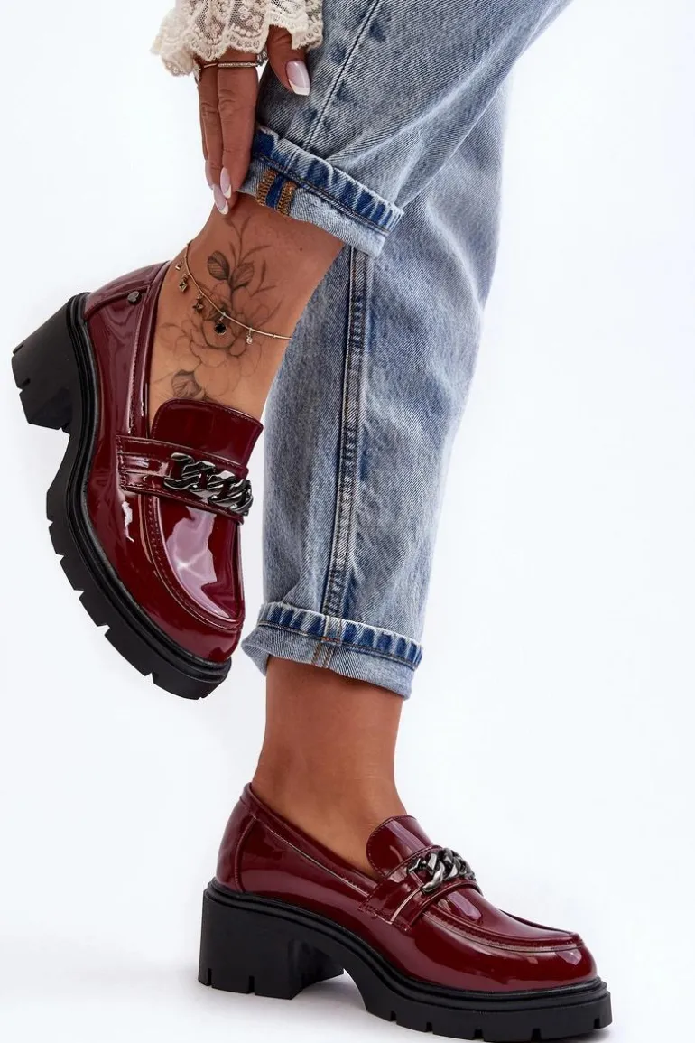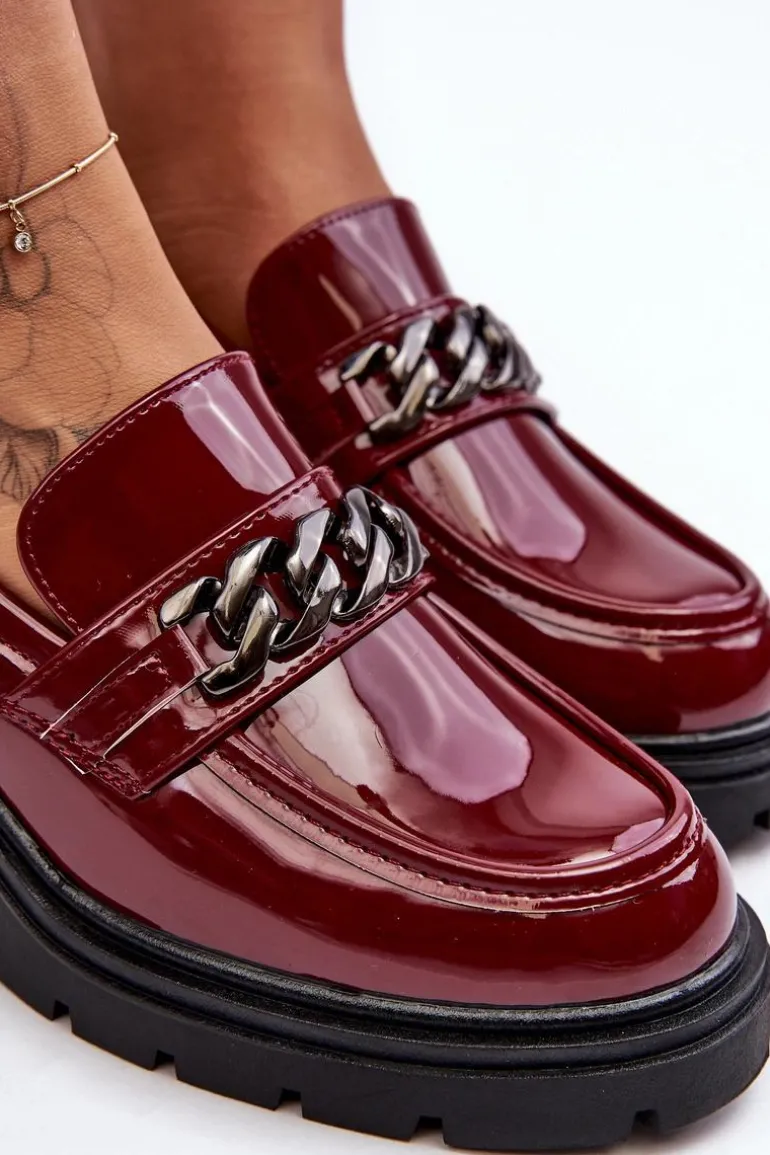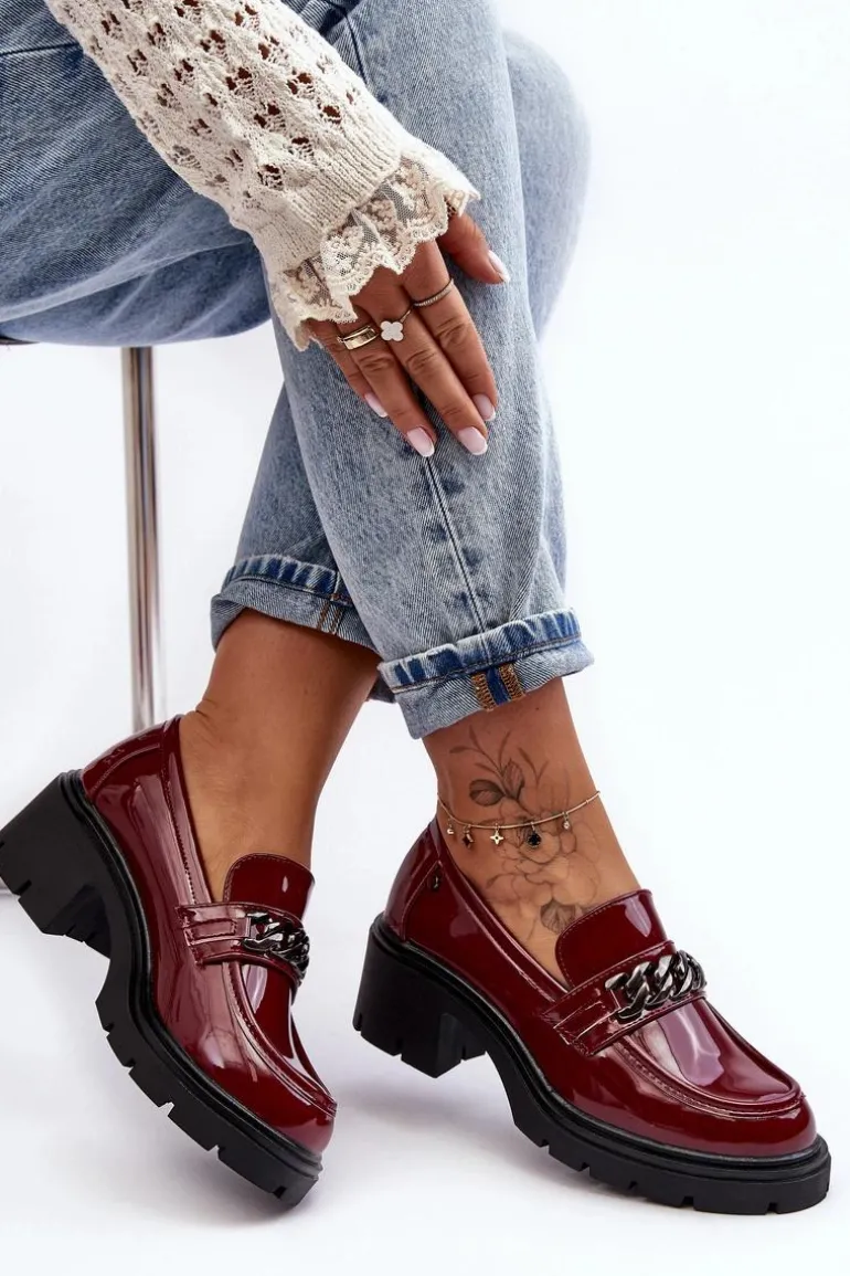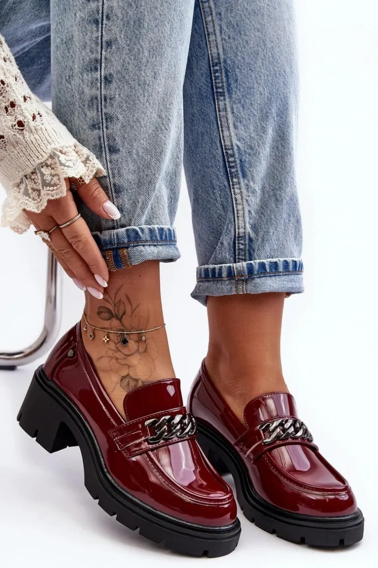 Lakierowane Damskie Półbuty Na Niskim Obcasie Bordowe Blimma
