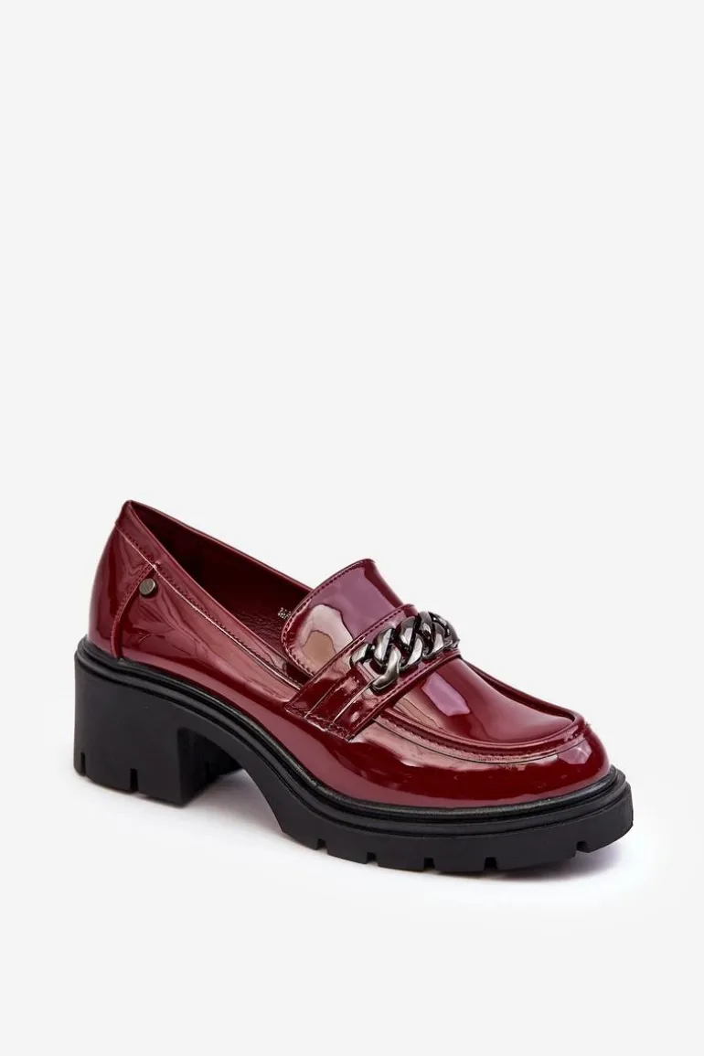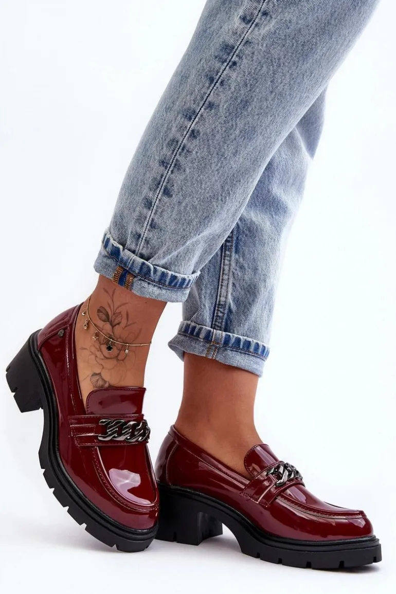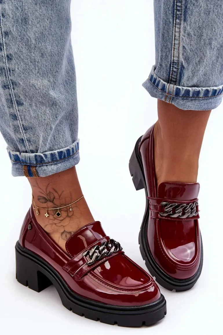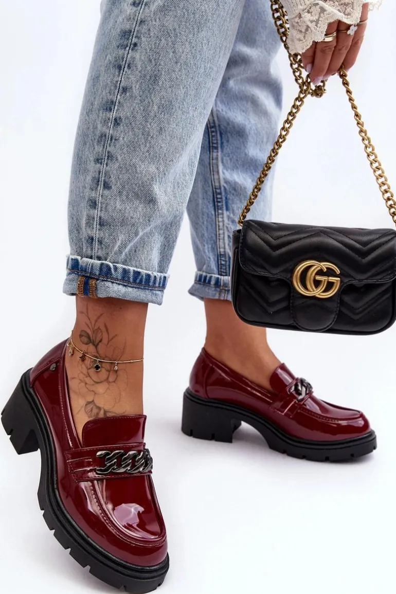 Lakierowane Damskie Półbuty Na Niskim Obcasie Bordowe Blimma